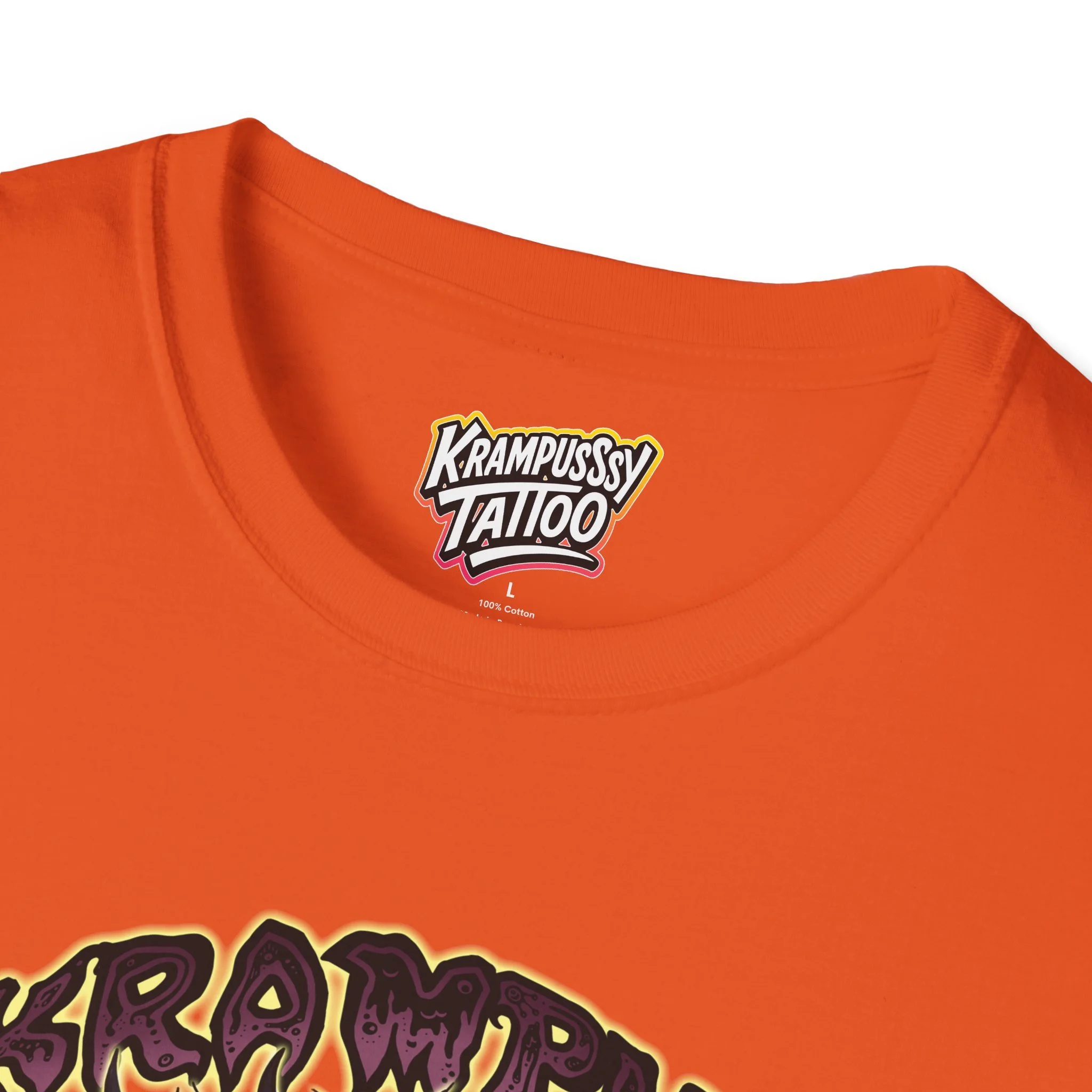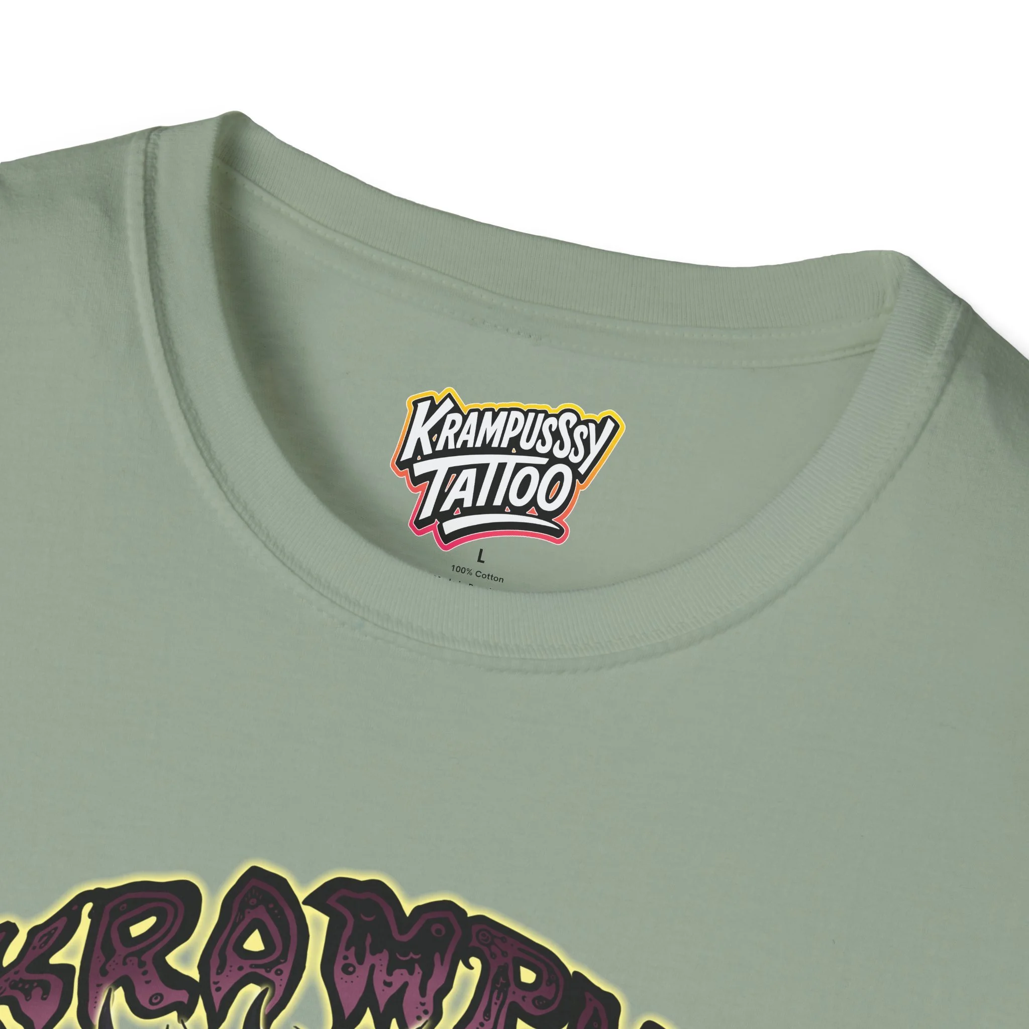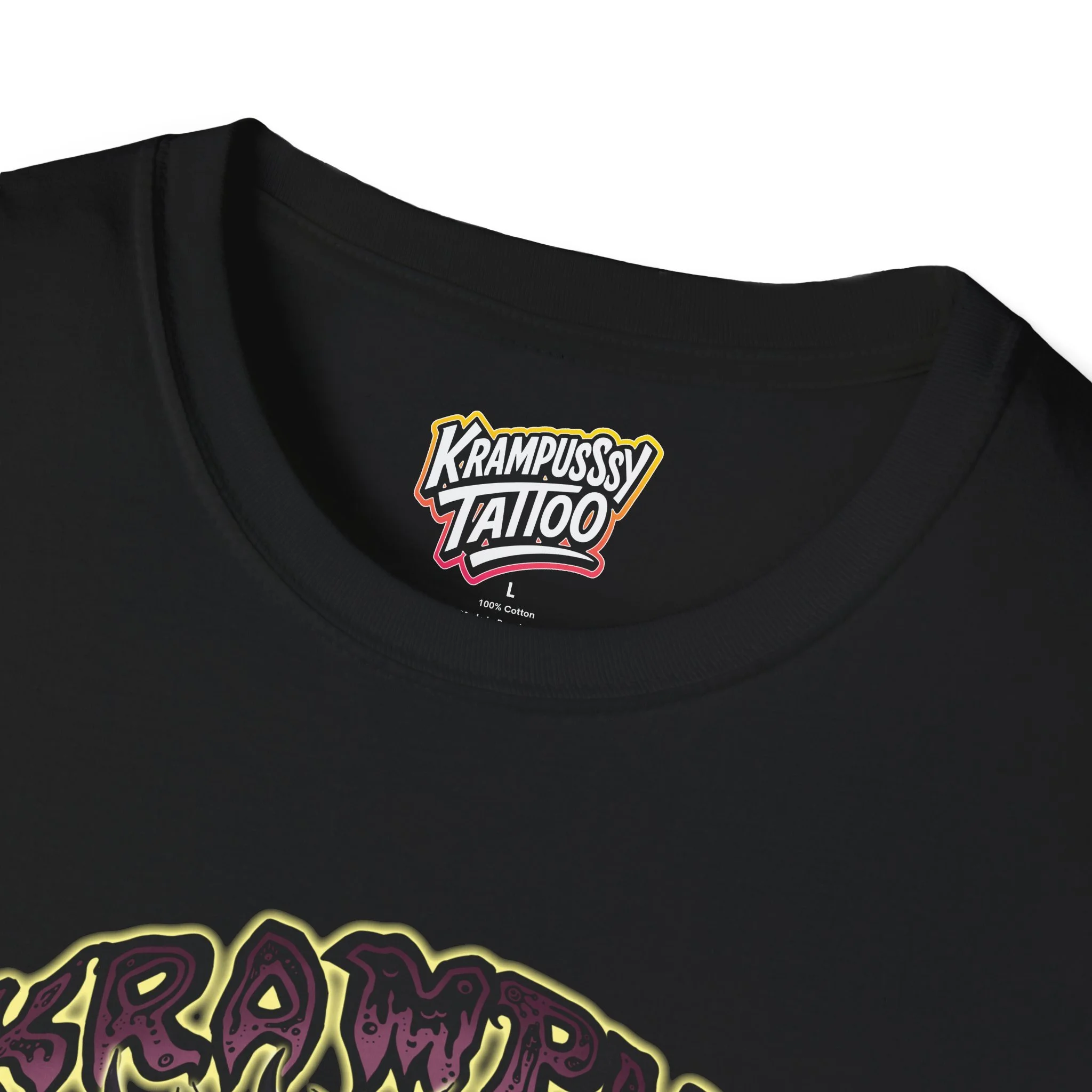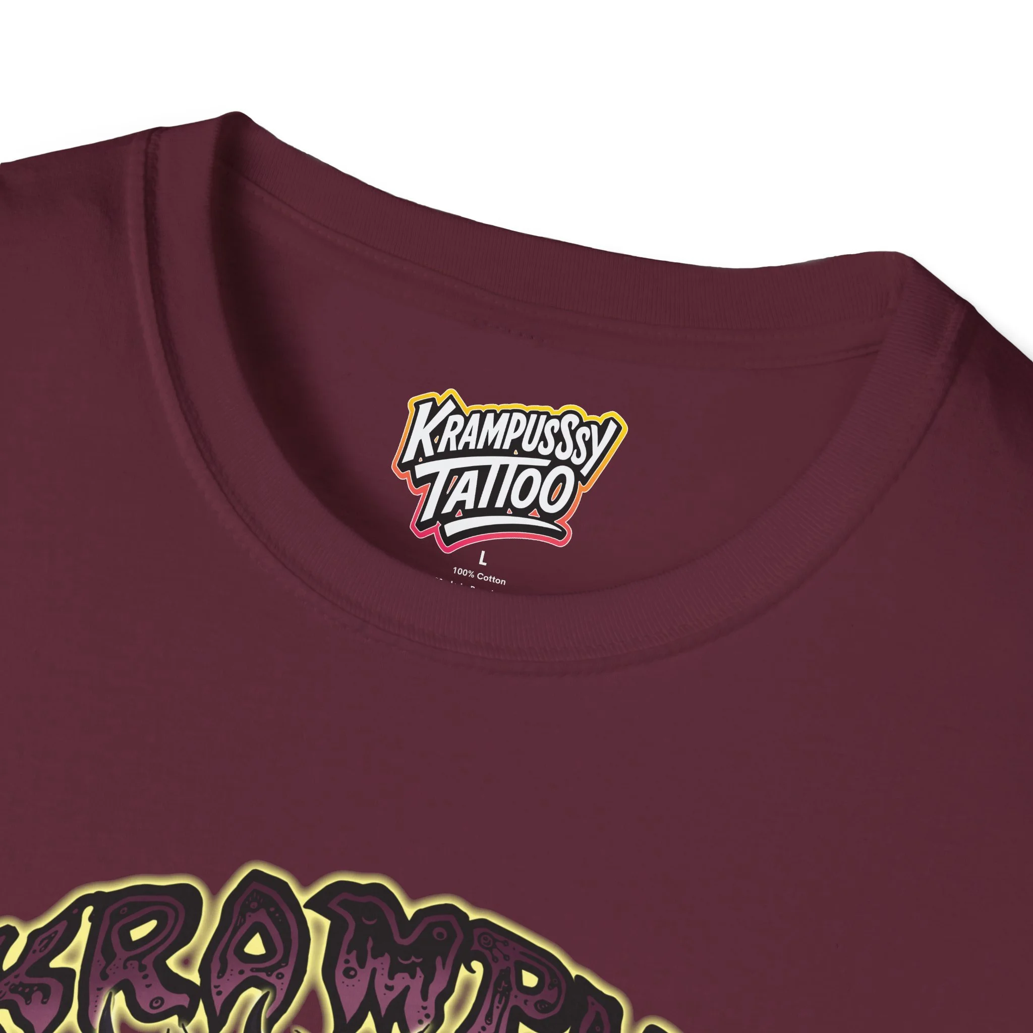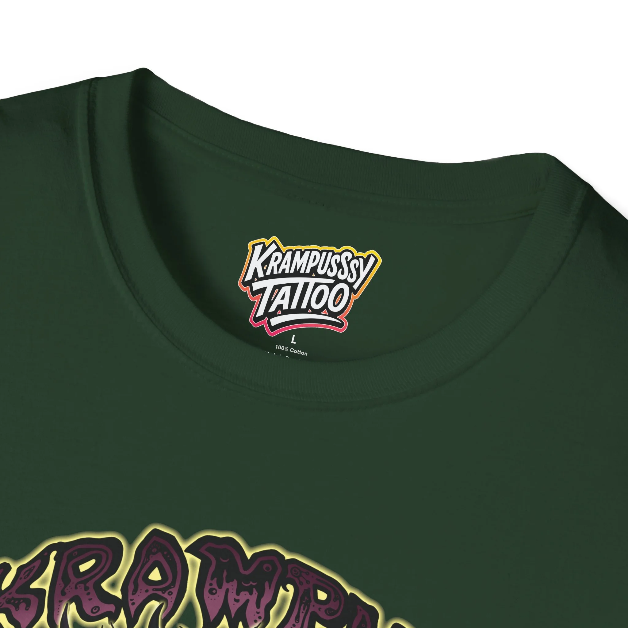 A unisex softstyle T-shirt featuring an illustration of Krampus, perfect for those who enjoy dark and alternative designs. Ideal for adults looking for a statement piece to wear during Halloween or Christmas celebrations.