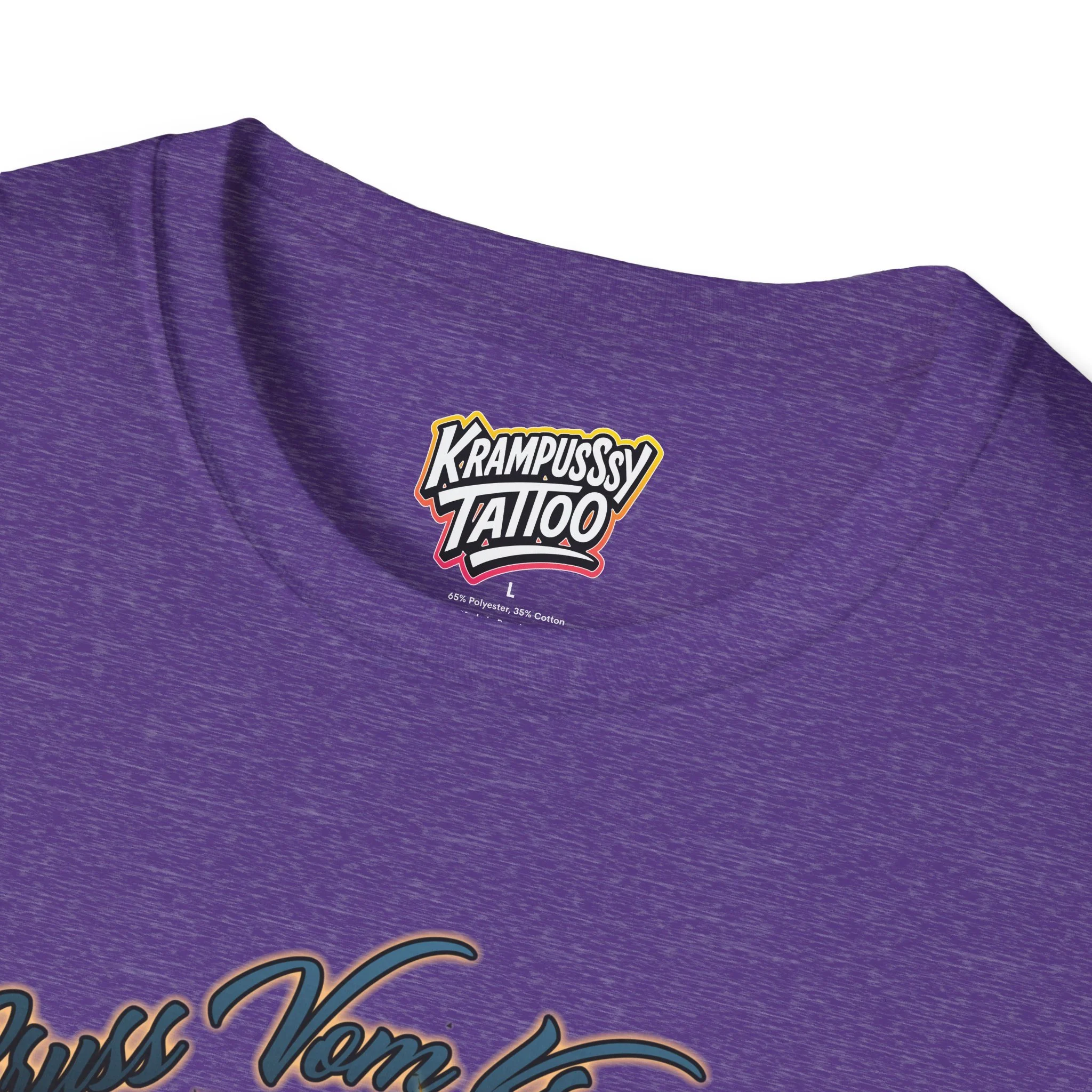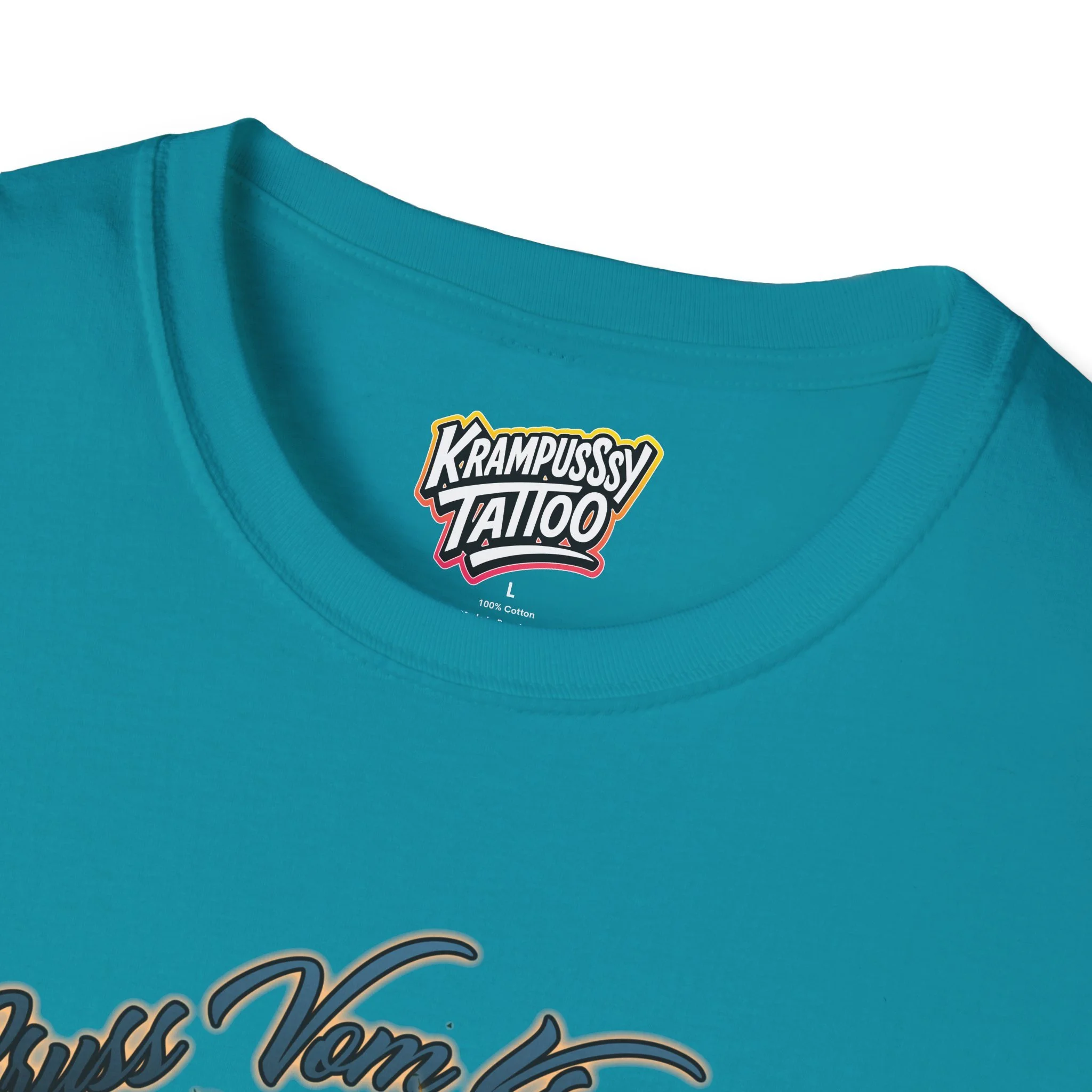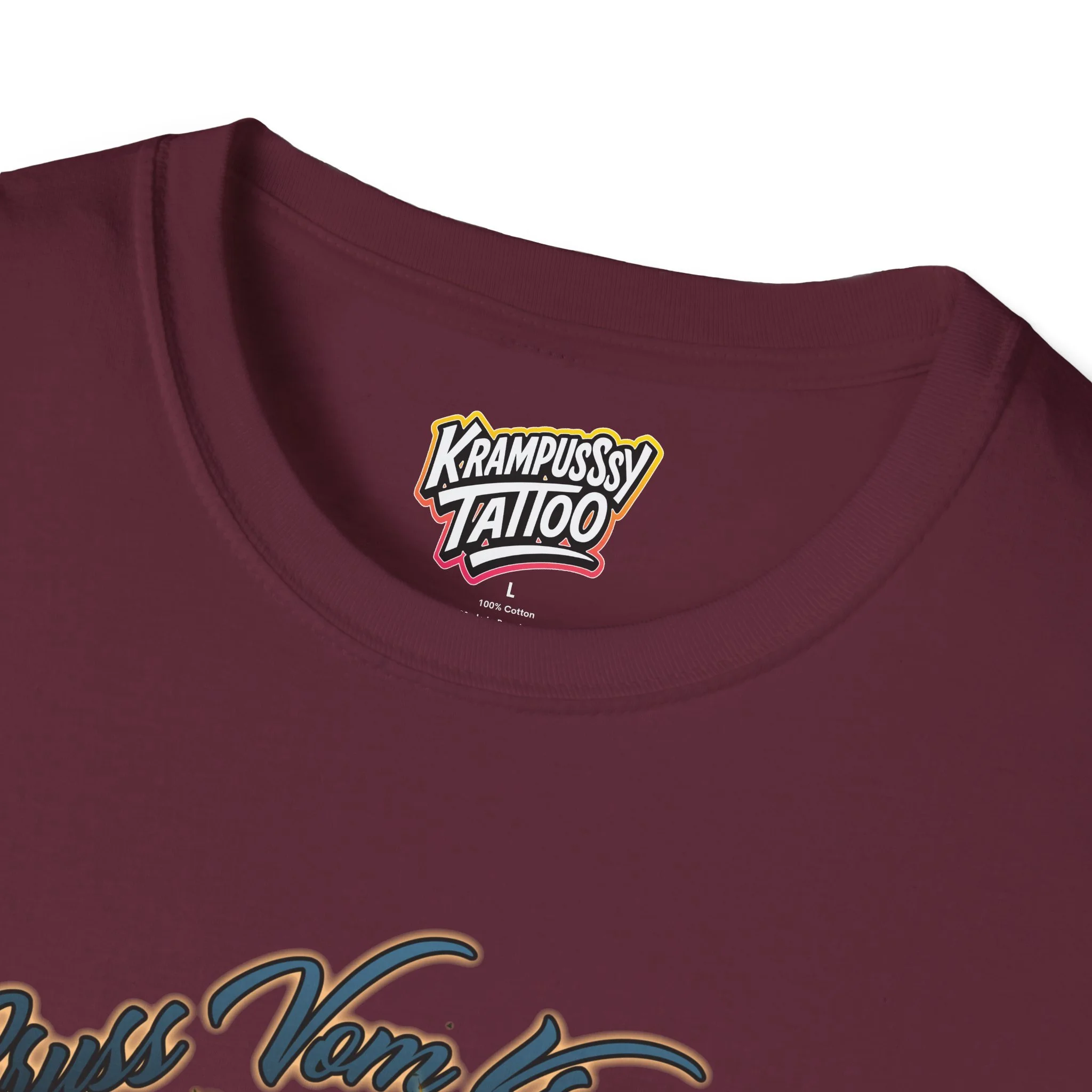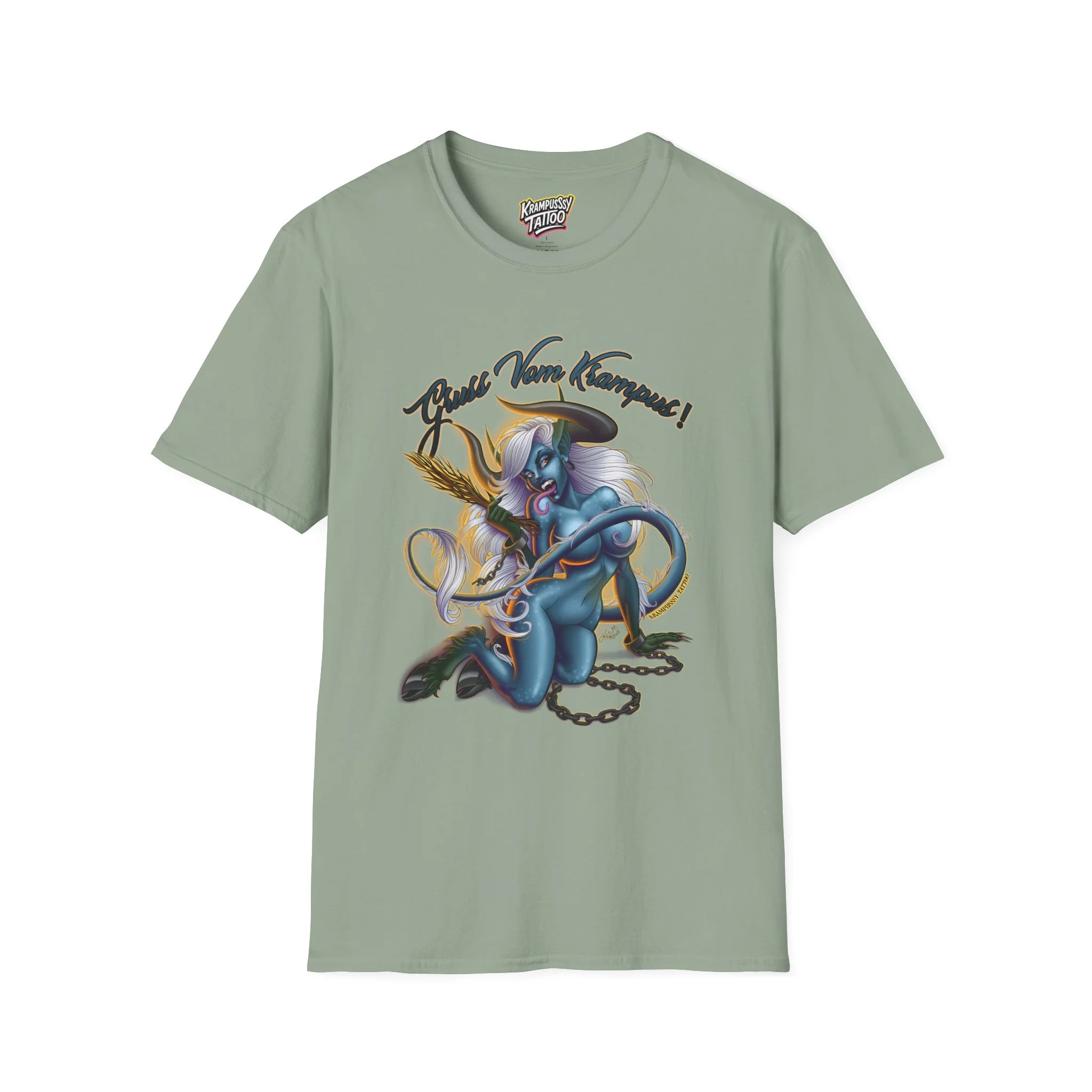 A unisex softstyle T-shirt featuring an illustration of Krampus, perfect for those who enjoy dark and alternative designs. Ideal for adults looking for a statement piece to wear during Halloween or Christmas celebrations.