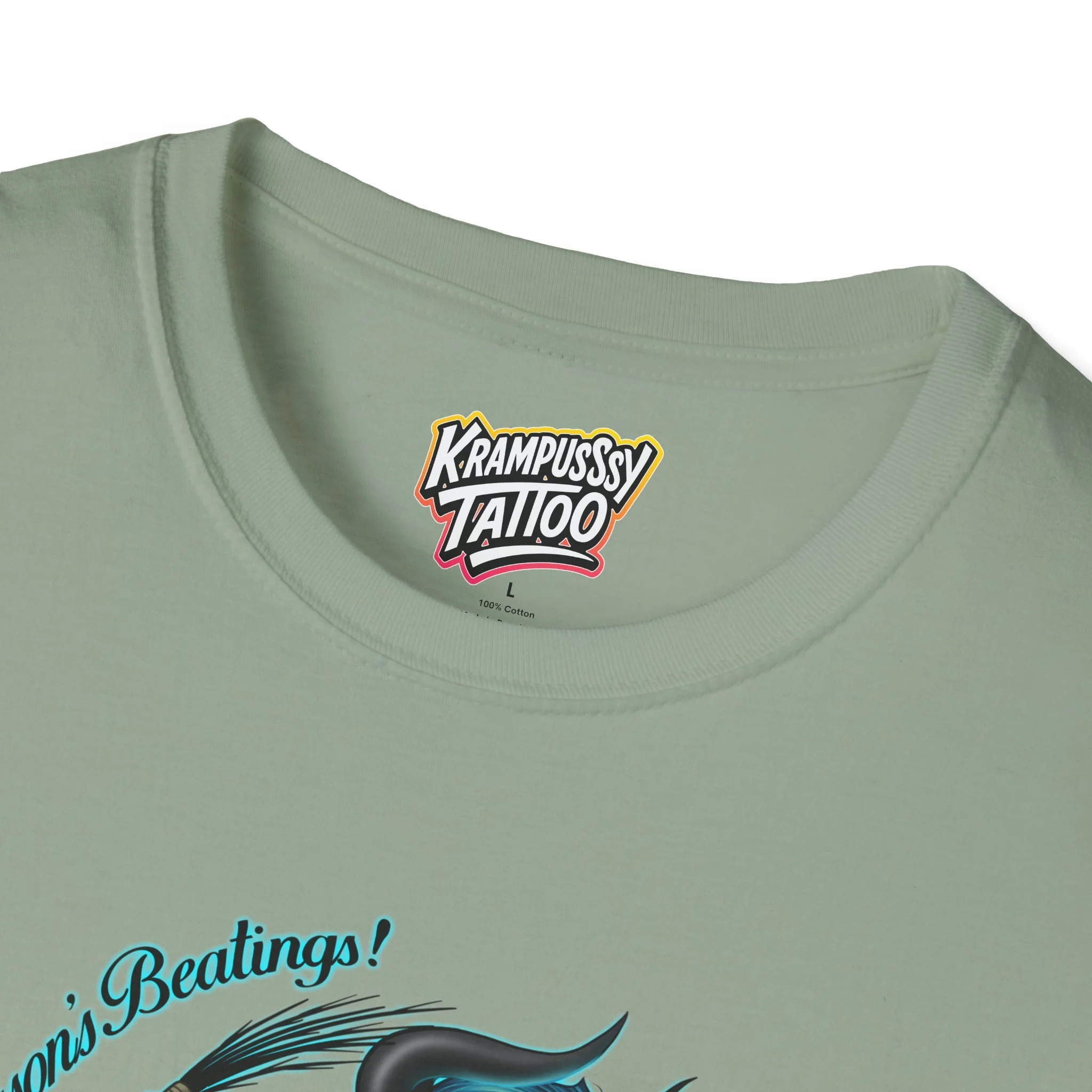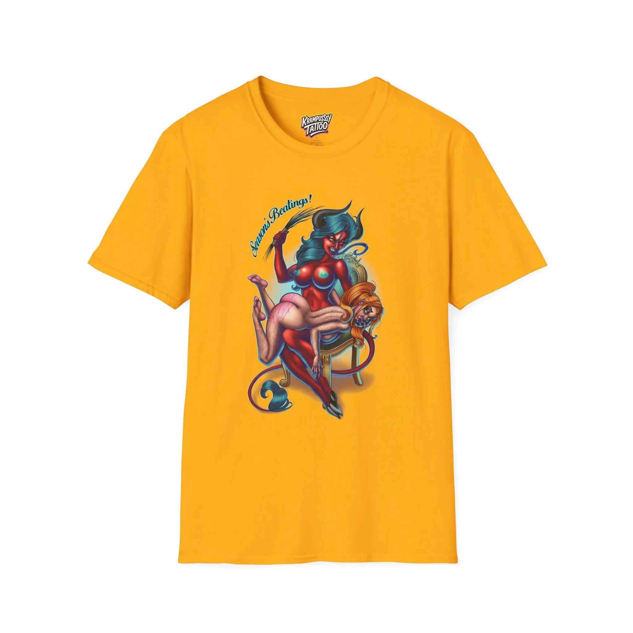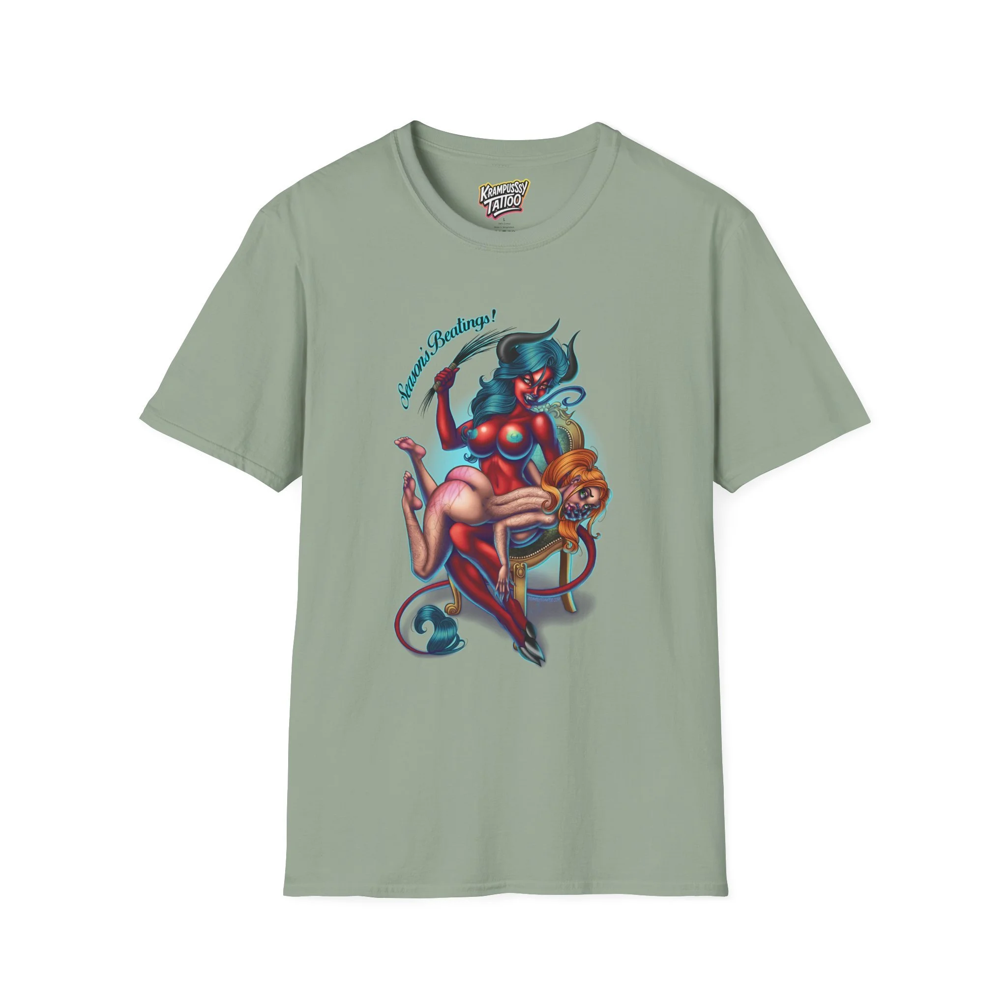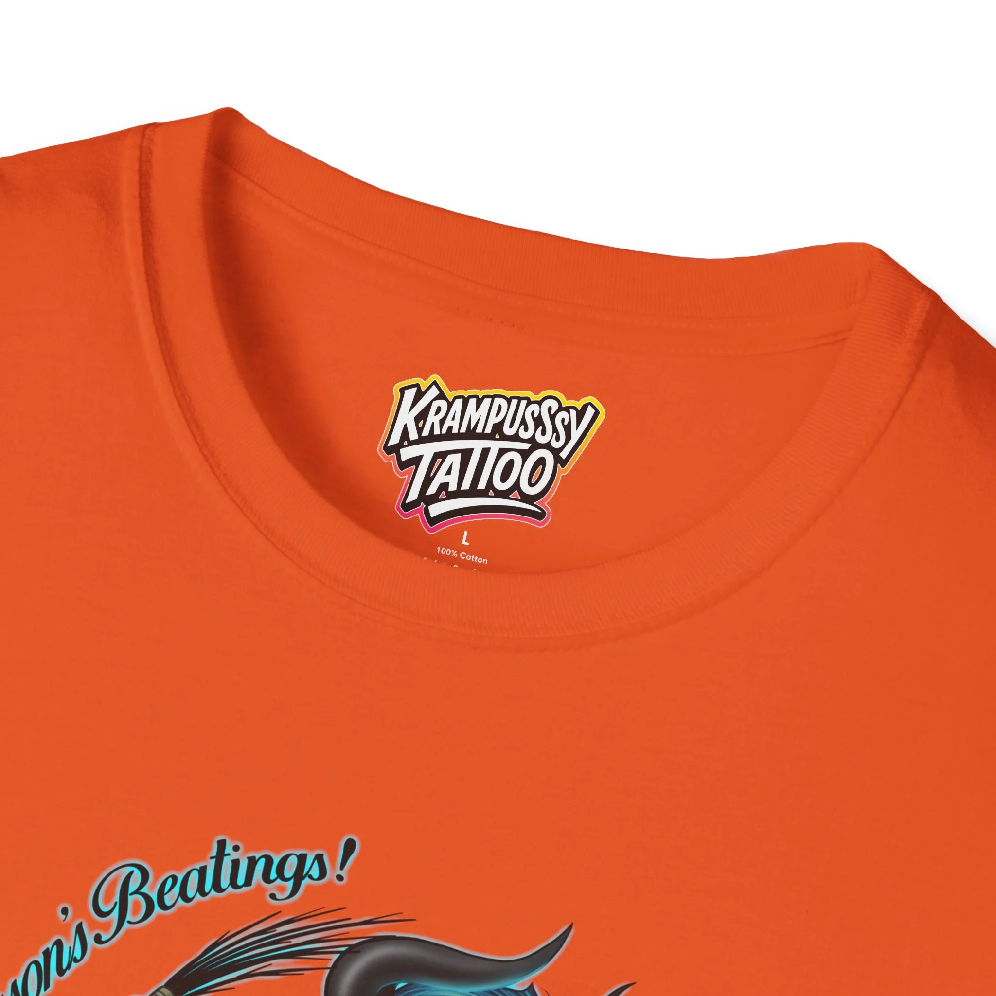 A unisex softstyle T-shirt featuring an illustration of Krampus, perfect for those who enjoy dark and alternative designs. Ideal for adults looking for a statement piece to wear during Halloween or Christmas celebrations.