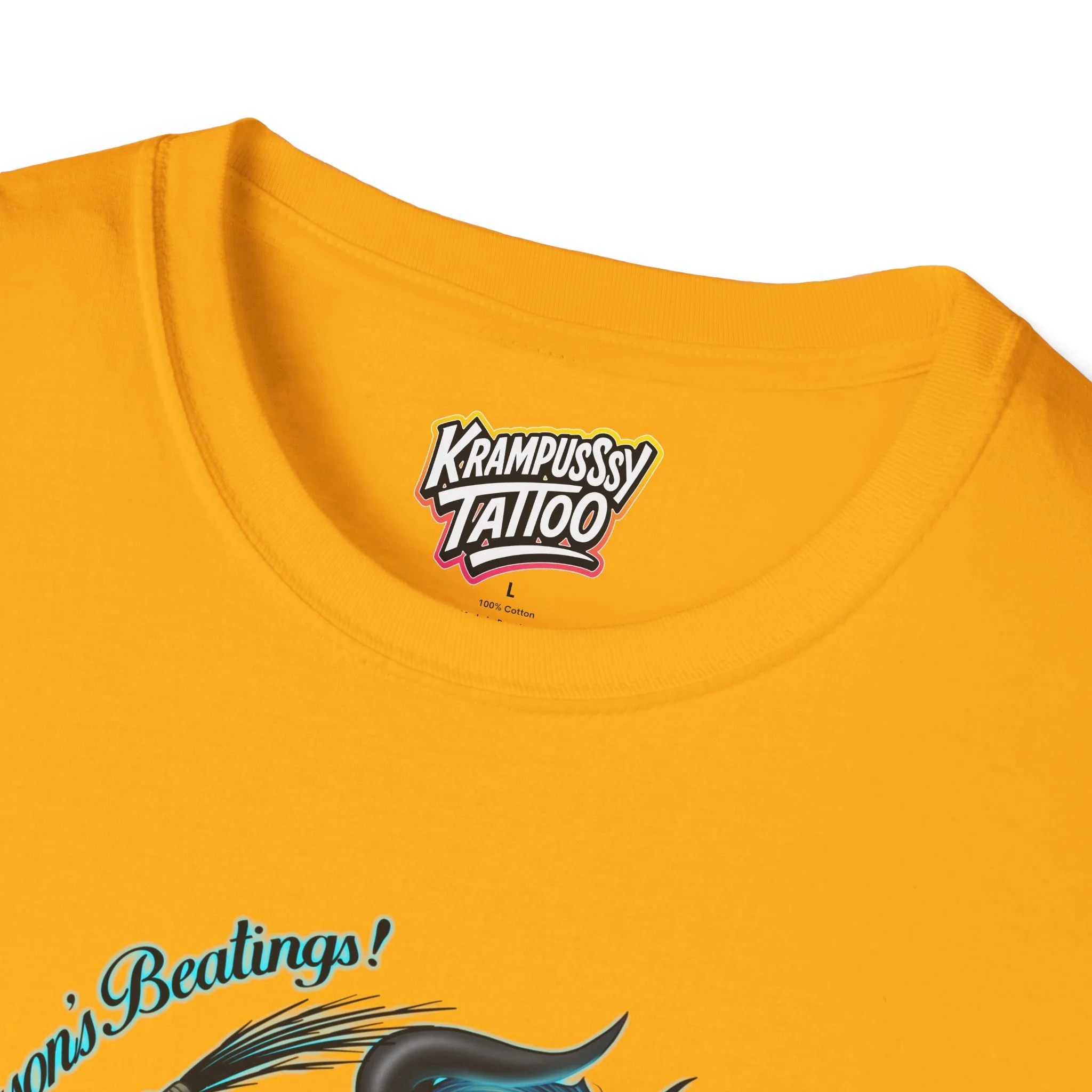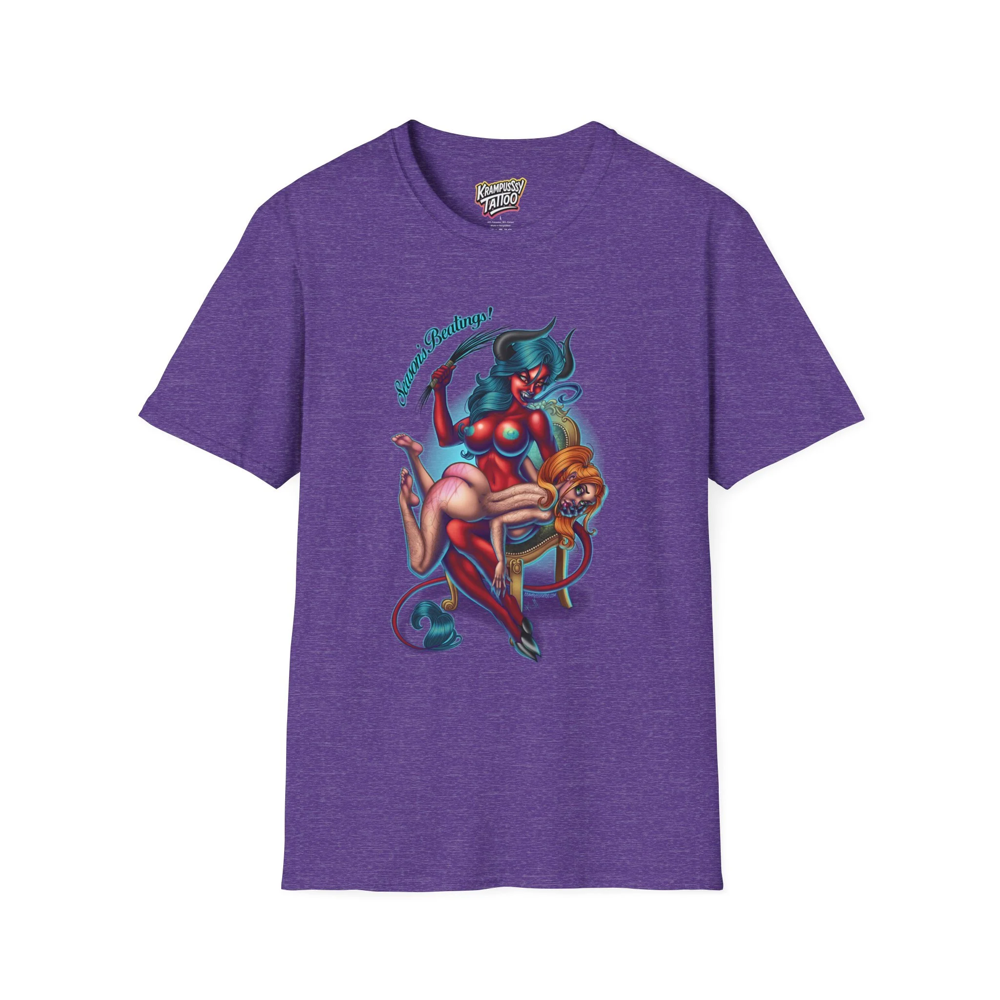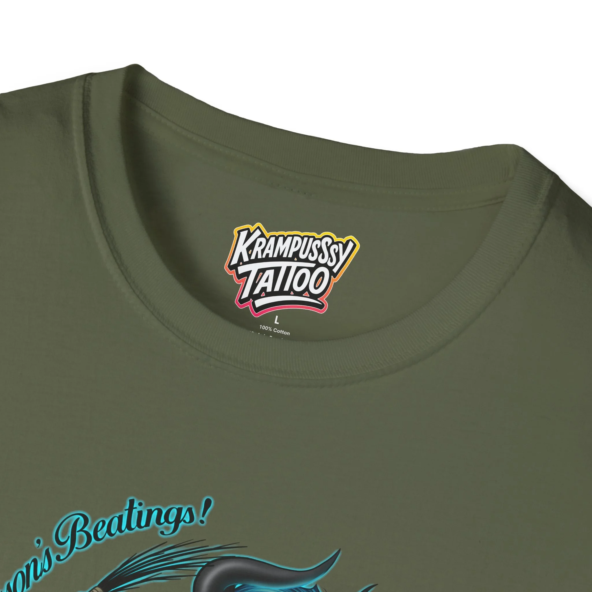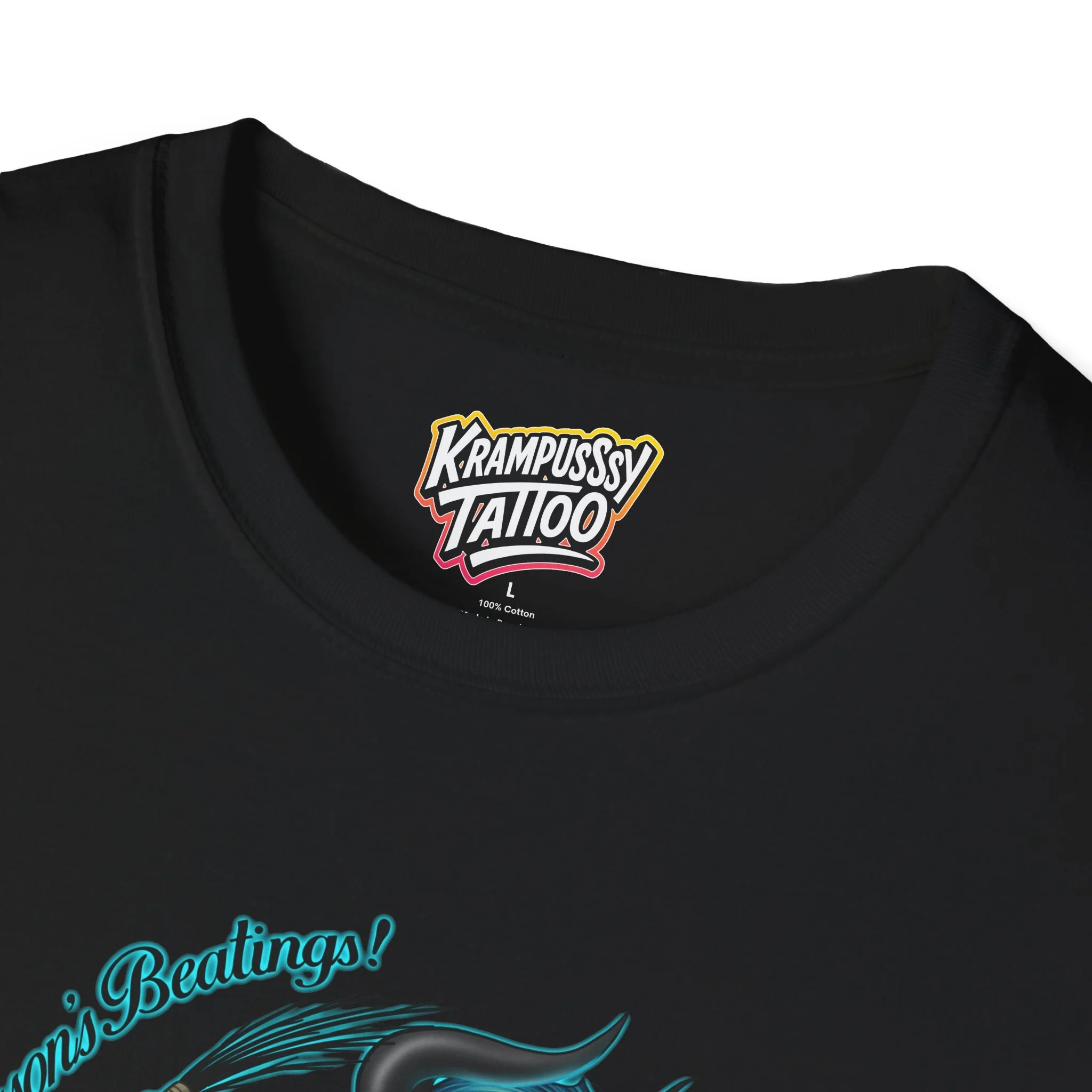 A unisex softstyle T-shirt featuring an illustration of Krampus, perfect for those who enjoy dark and alternative designs. Ideal for adults looking for a statement piece to wear during Halloween or Christmas celebrations.