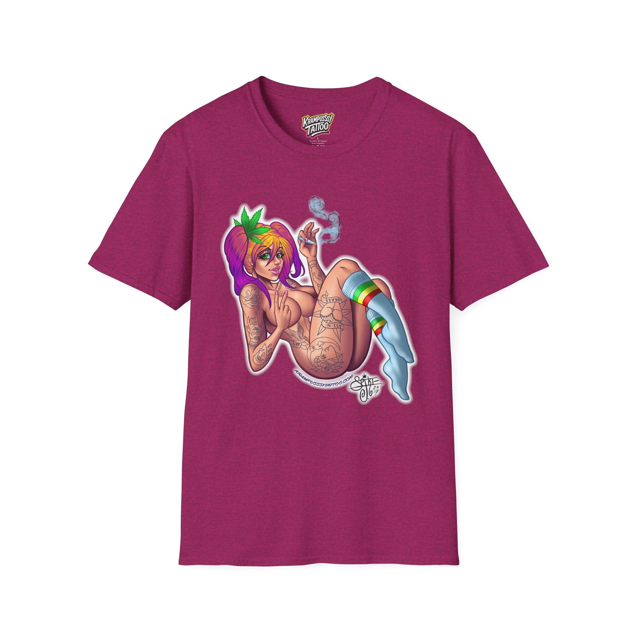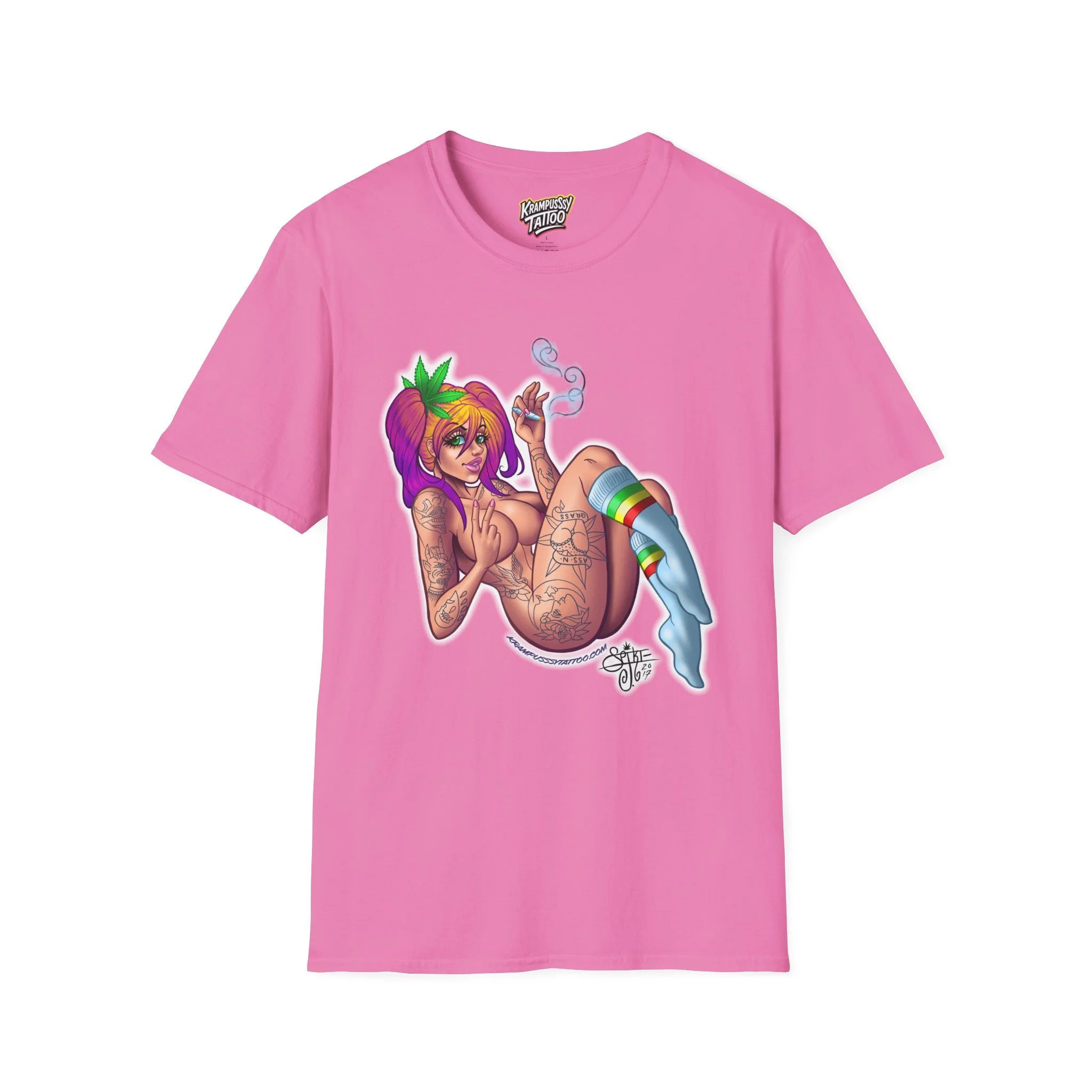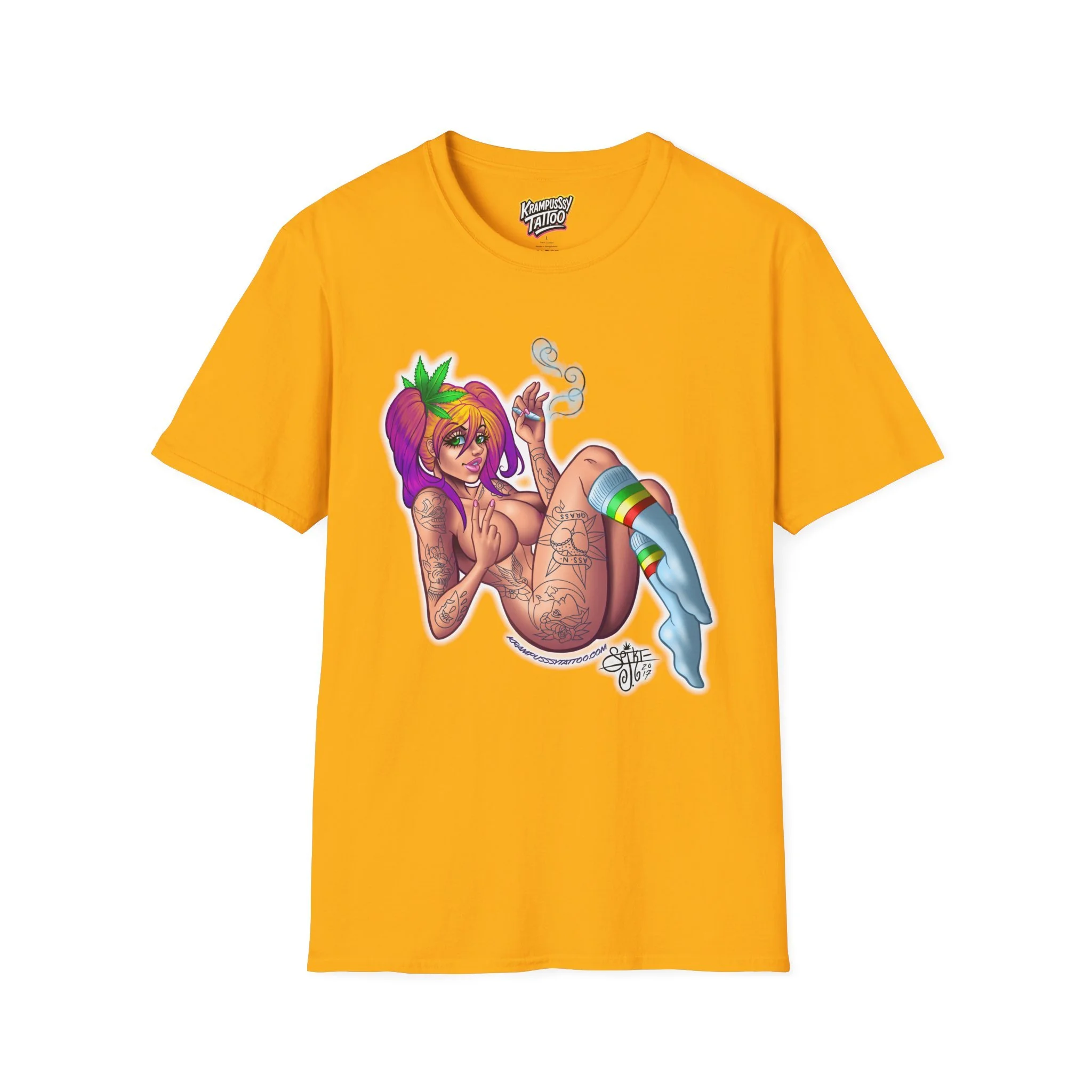 T-Shirt Tattooed Pinup Weed Smoker Unisex Softstyle
