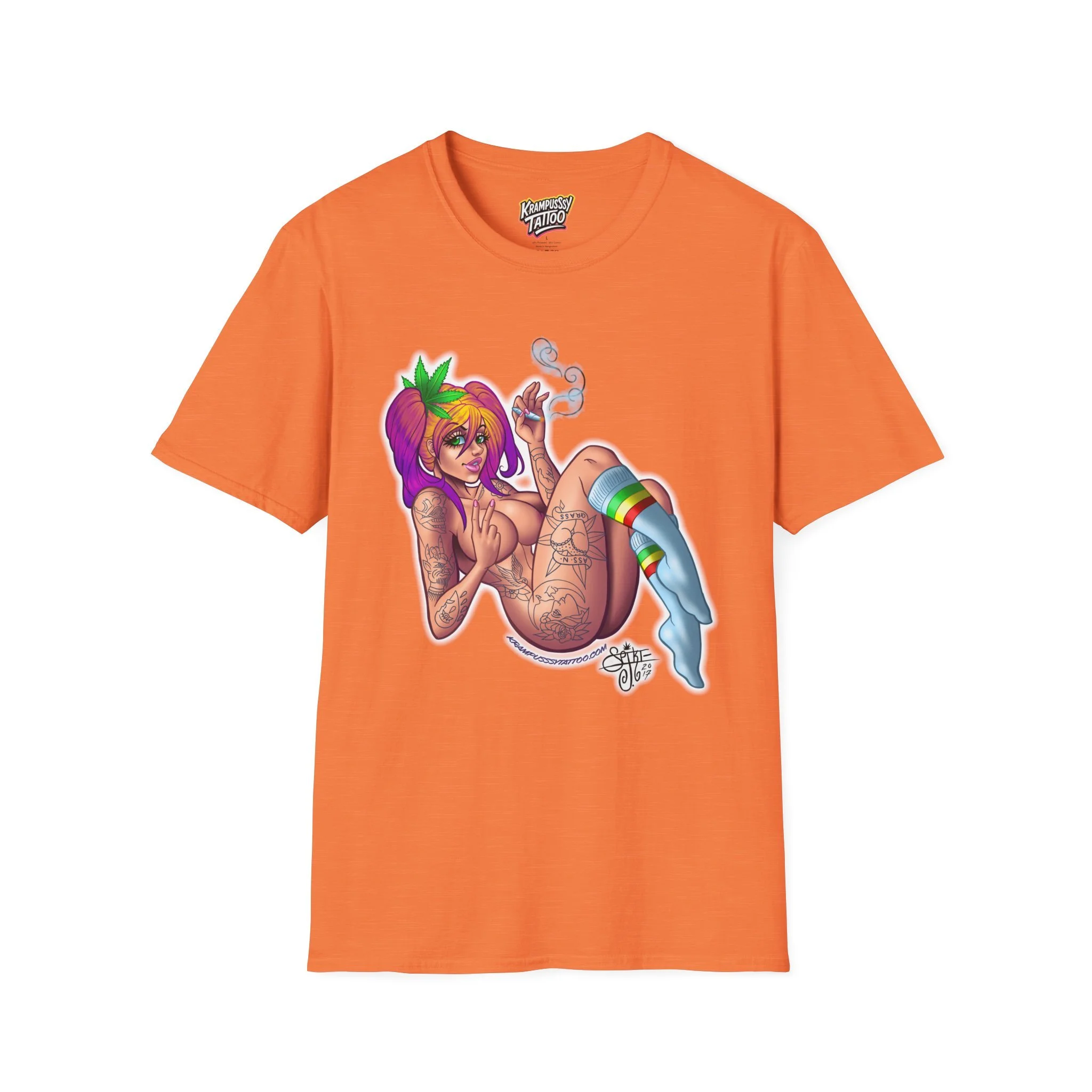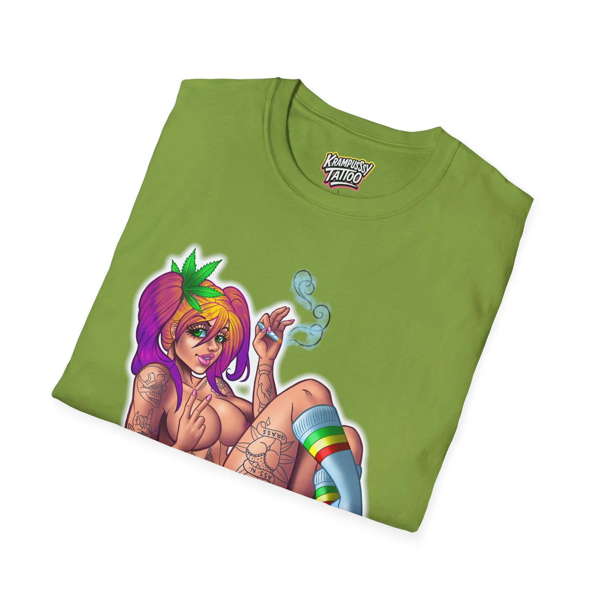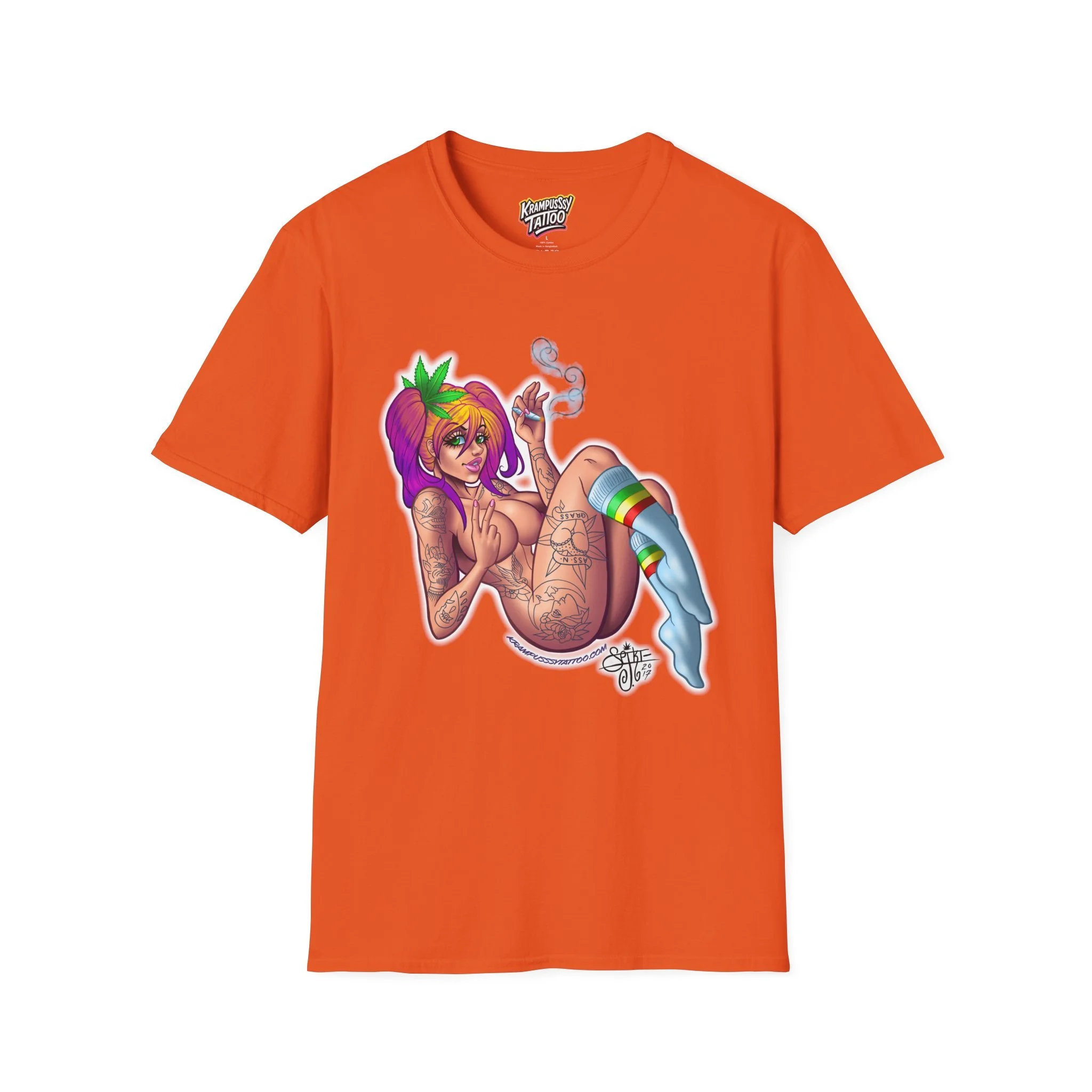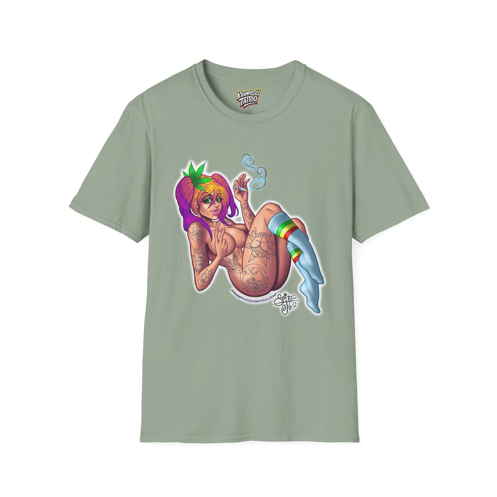 T-Shirt Tattooed Pinup Weed Smoker Unisex Softstyle