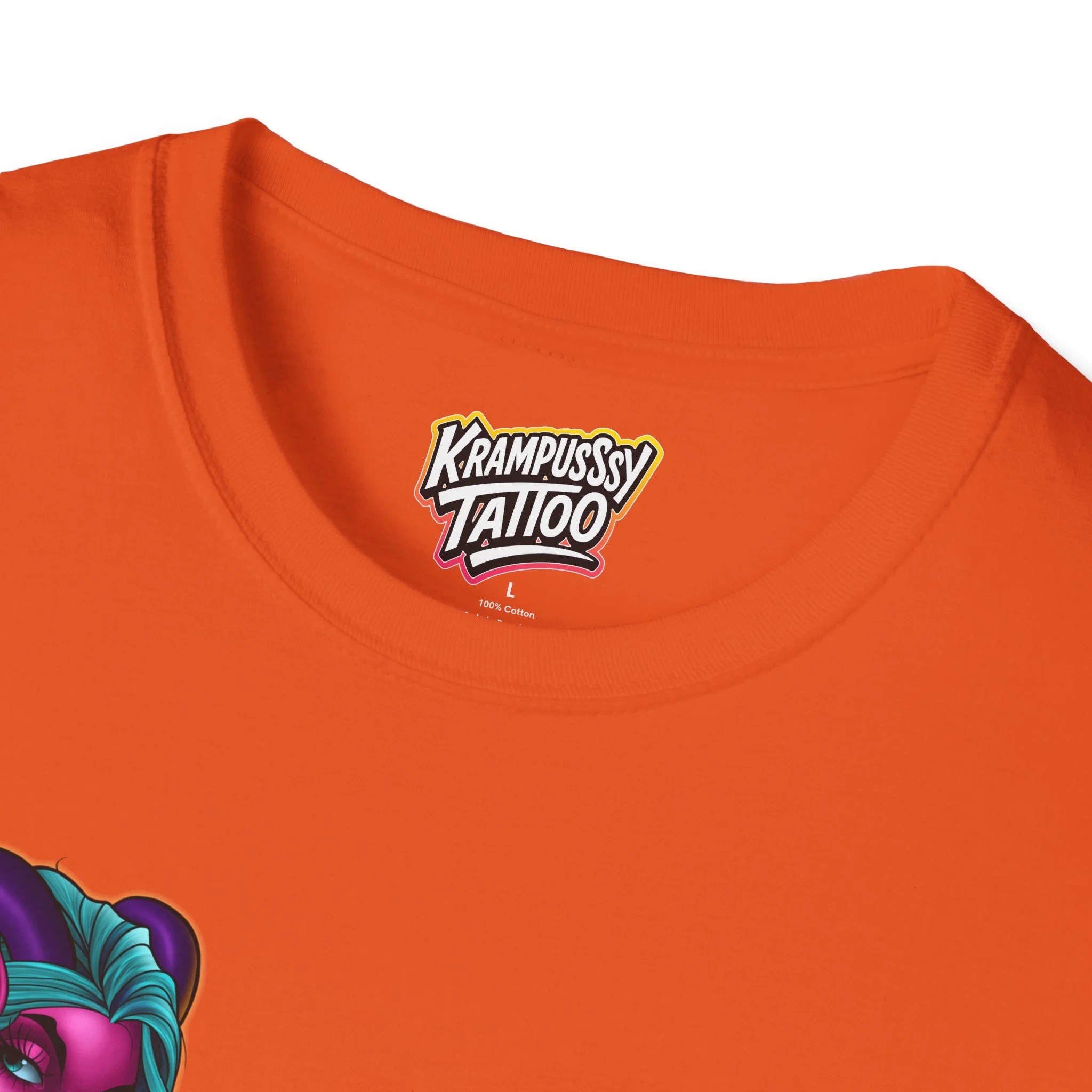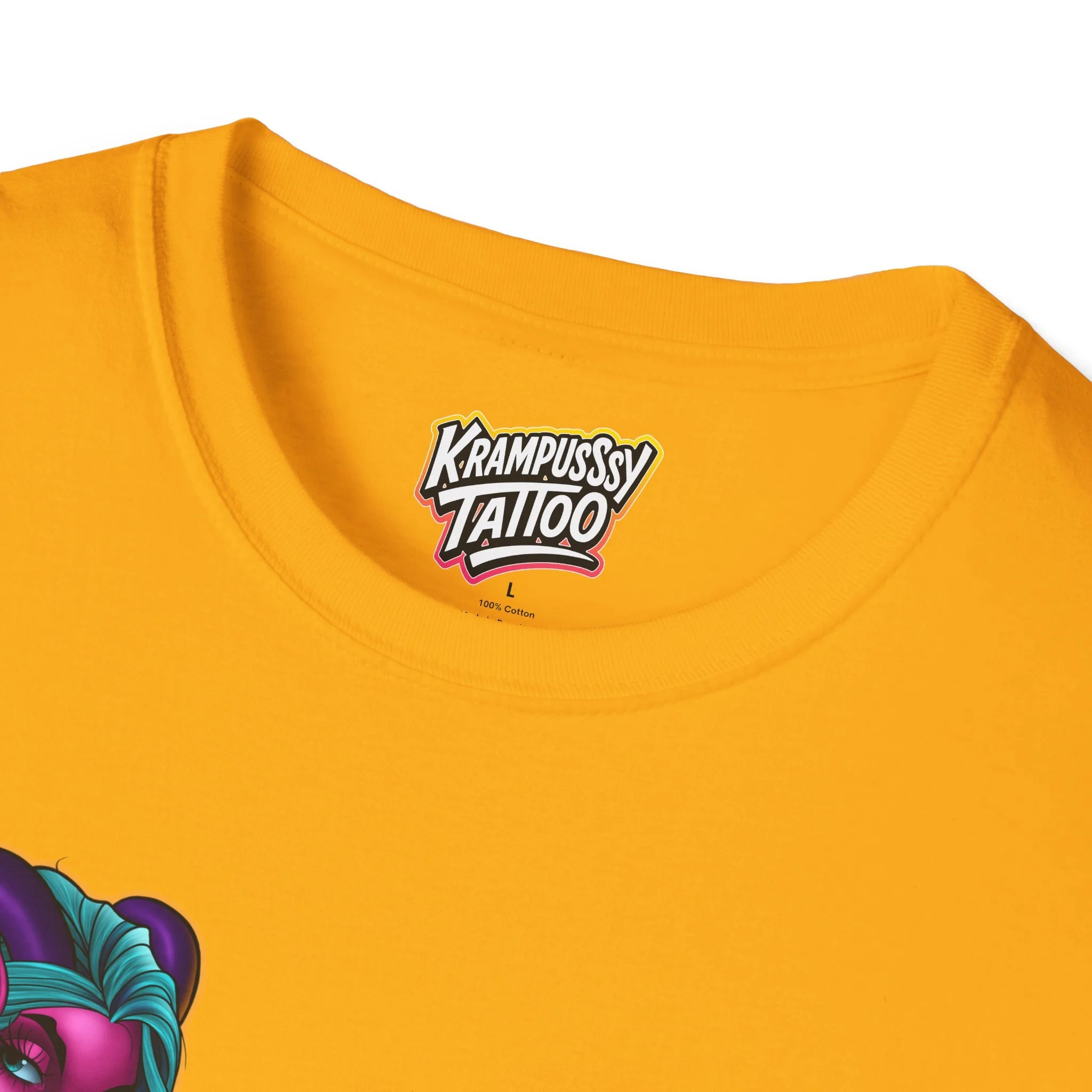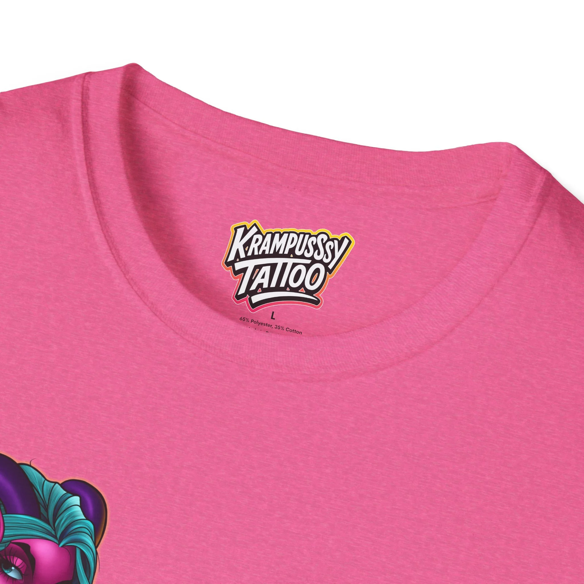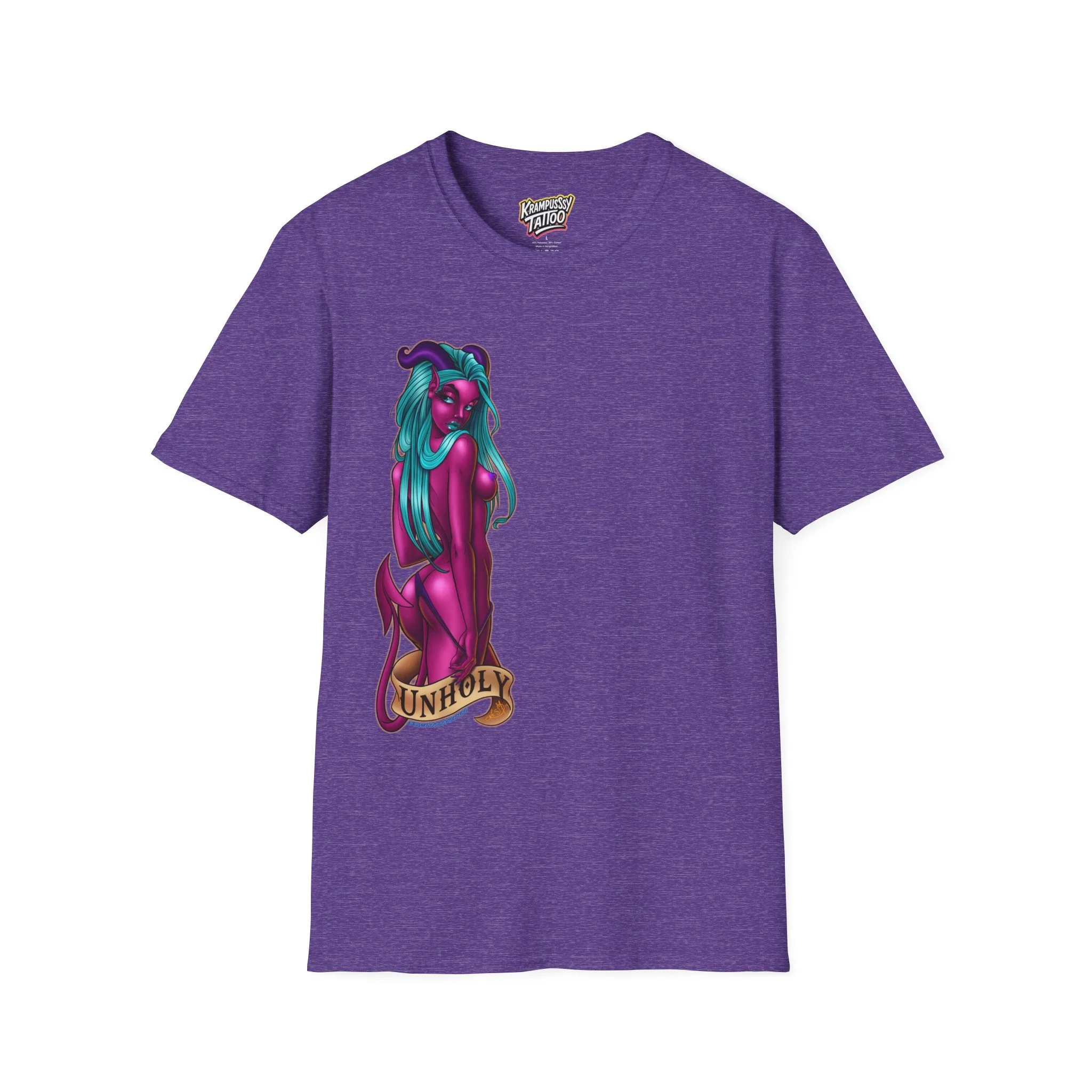A sexy succubus pinup design on a unisex softstyle T-shirt. This shirt is made from durable and smooth fabric, perfect for printing and offers a comfortable fit. Suitable for adults looking for a unique and edgy addition to their wardrobe. Perfect for Halloween celebrations and fans of dark fantasy themes.