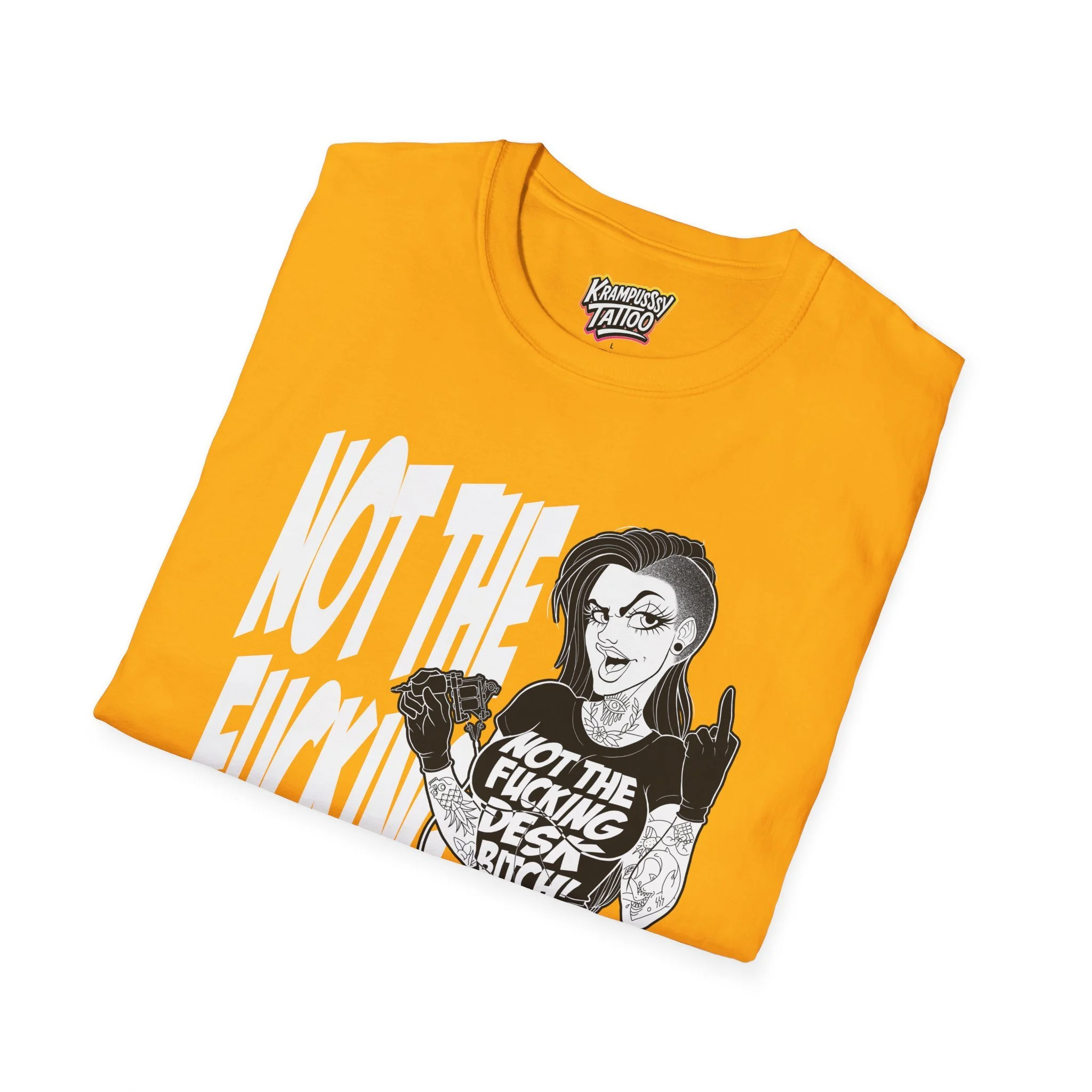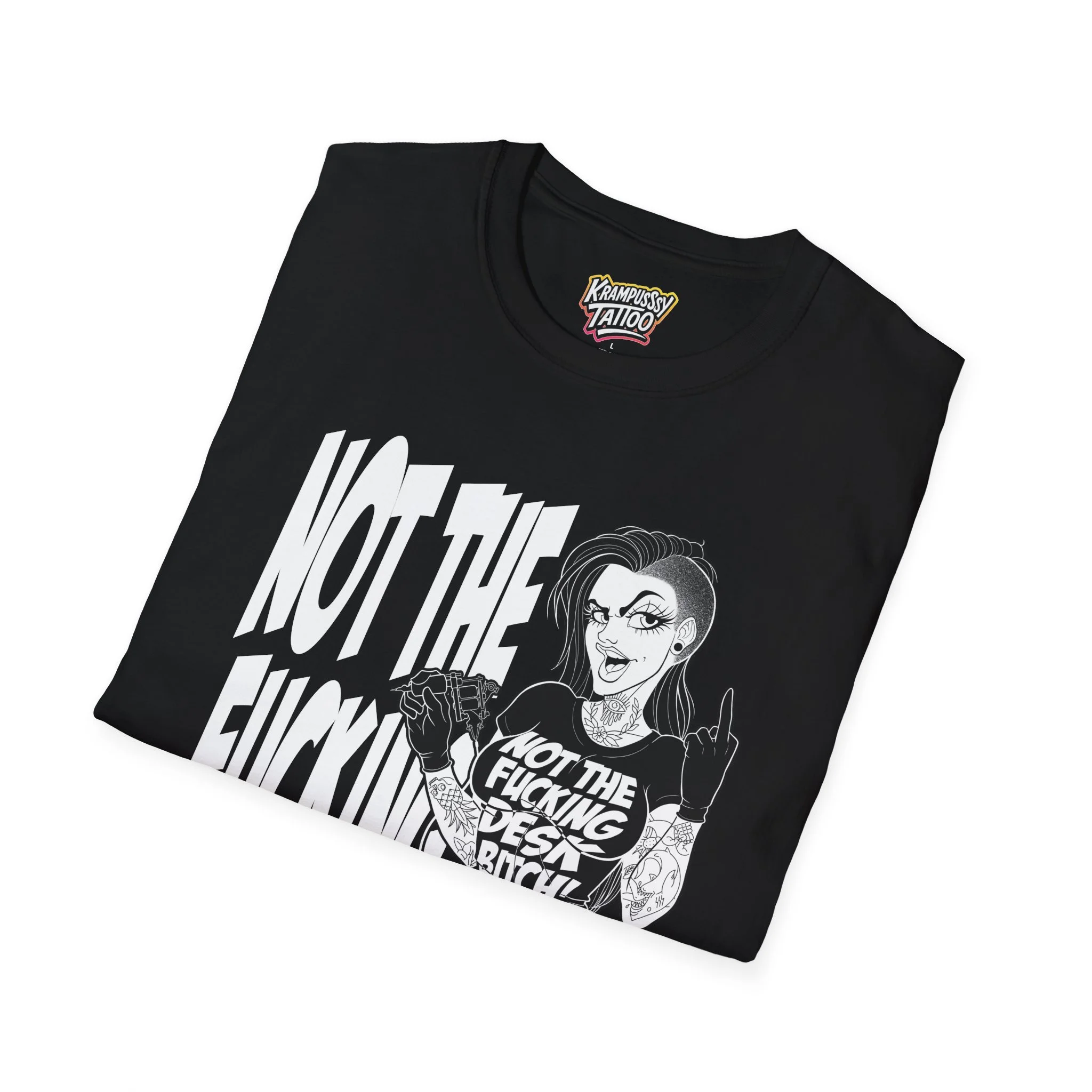 T-Shirt Female Tattoo Artist -Not the Fucking Desk Bitch Profanity