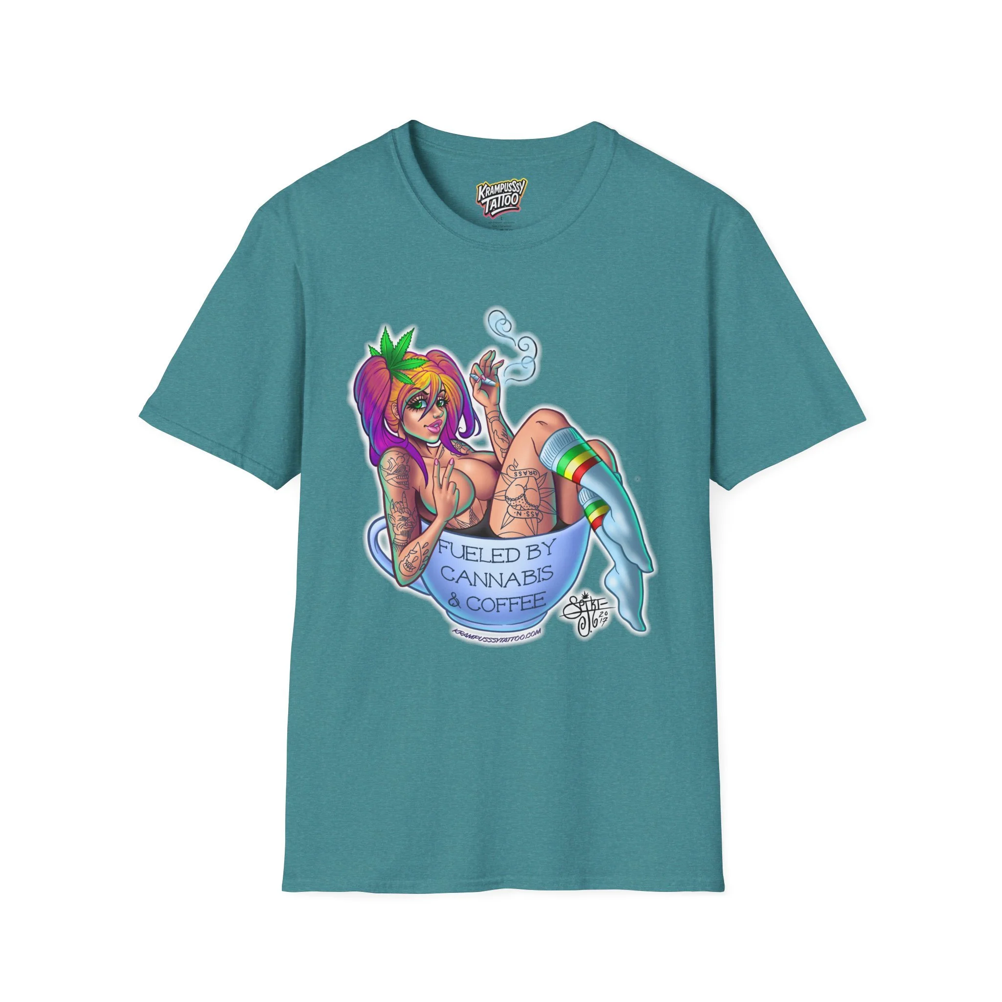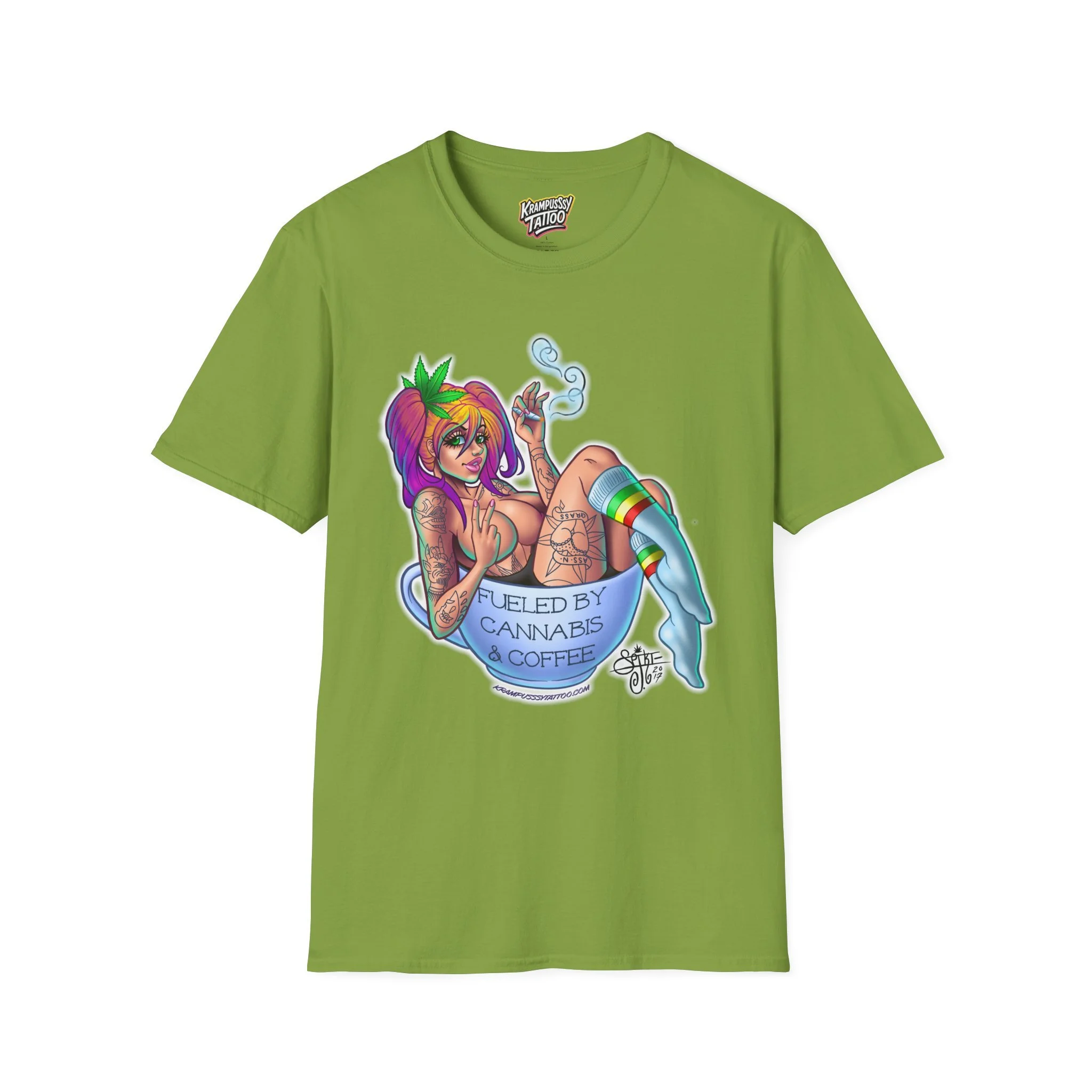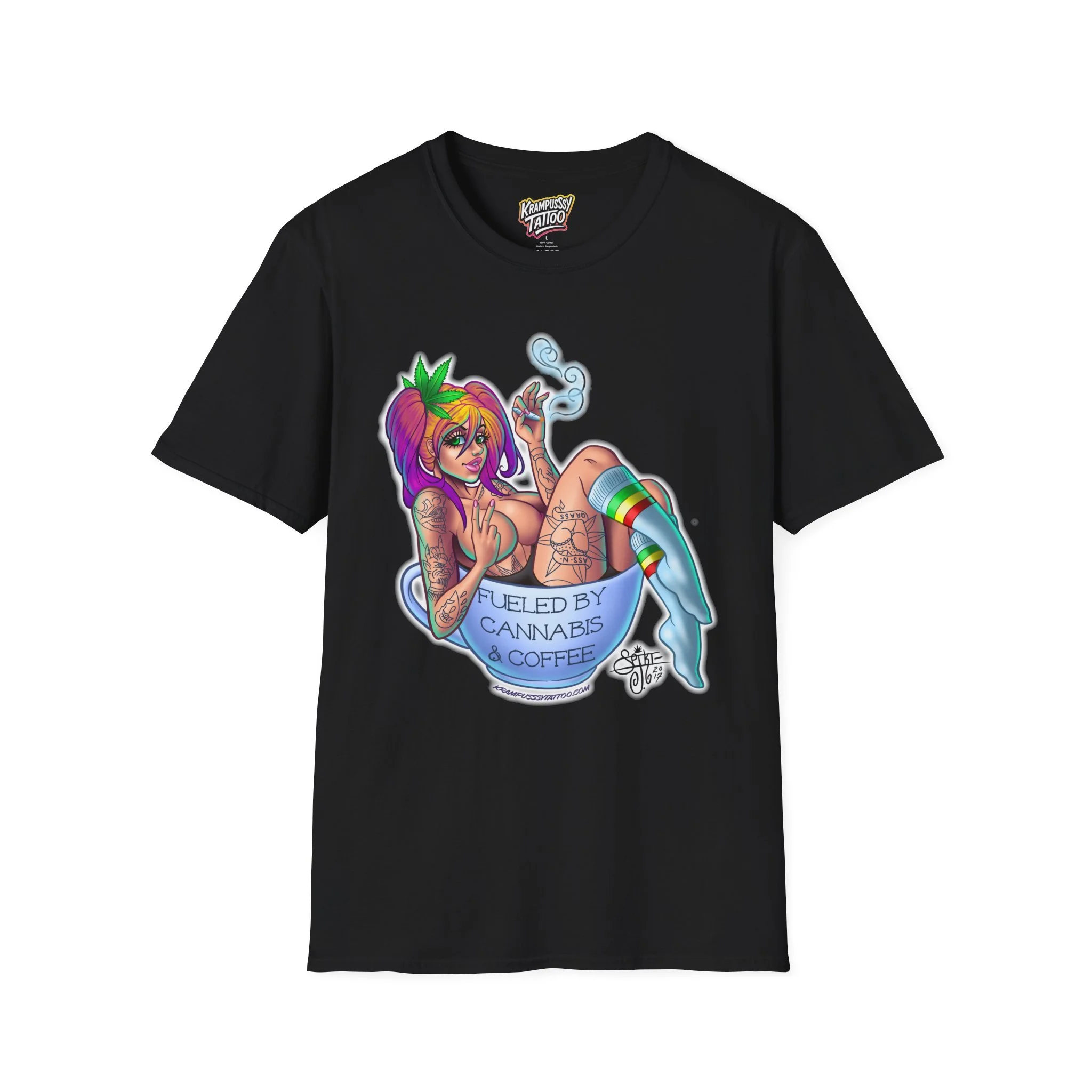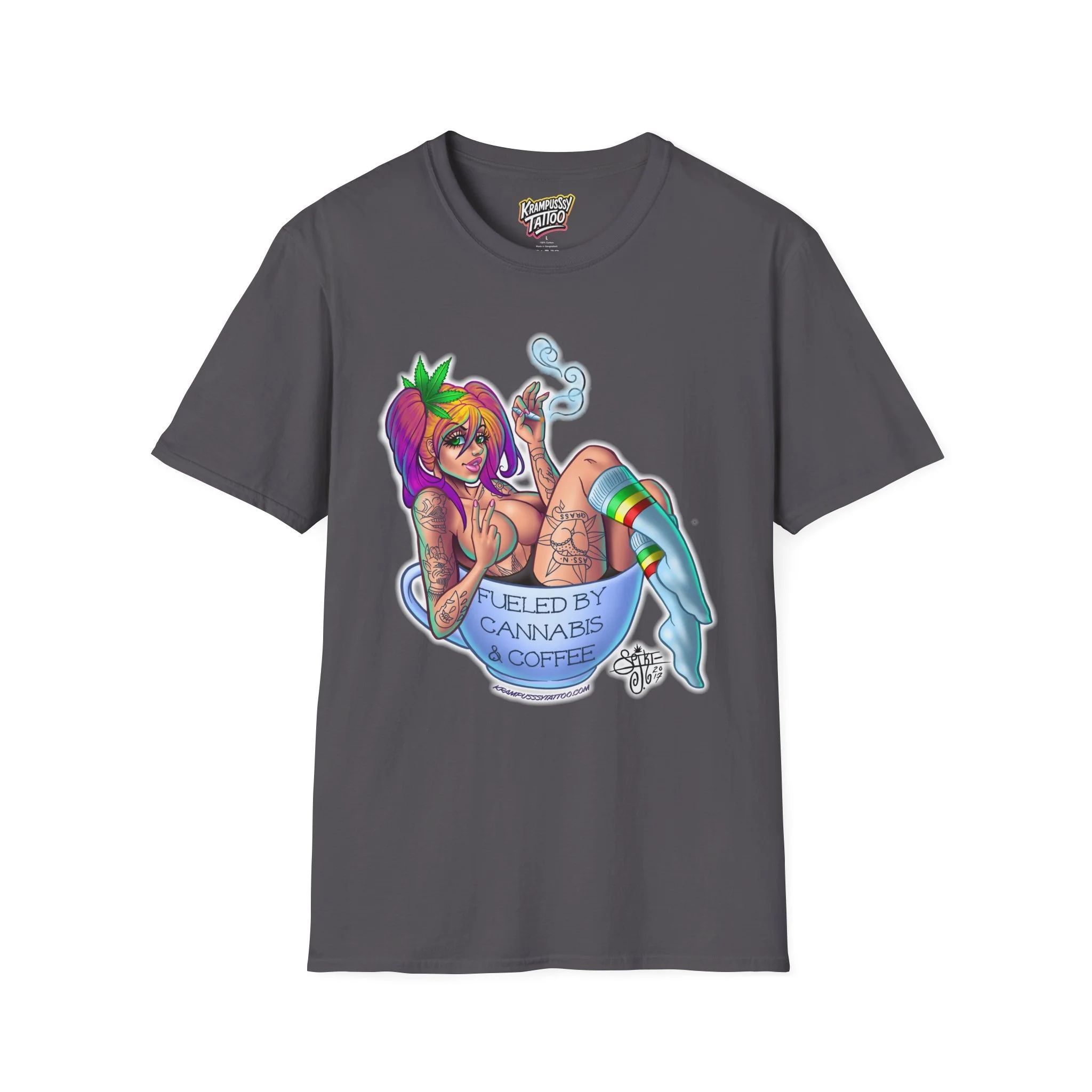 T-Shirt Tattooed Pinup Coffee Cup Weed Smoker Unisex Softstyle