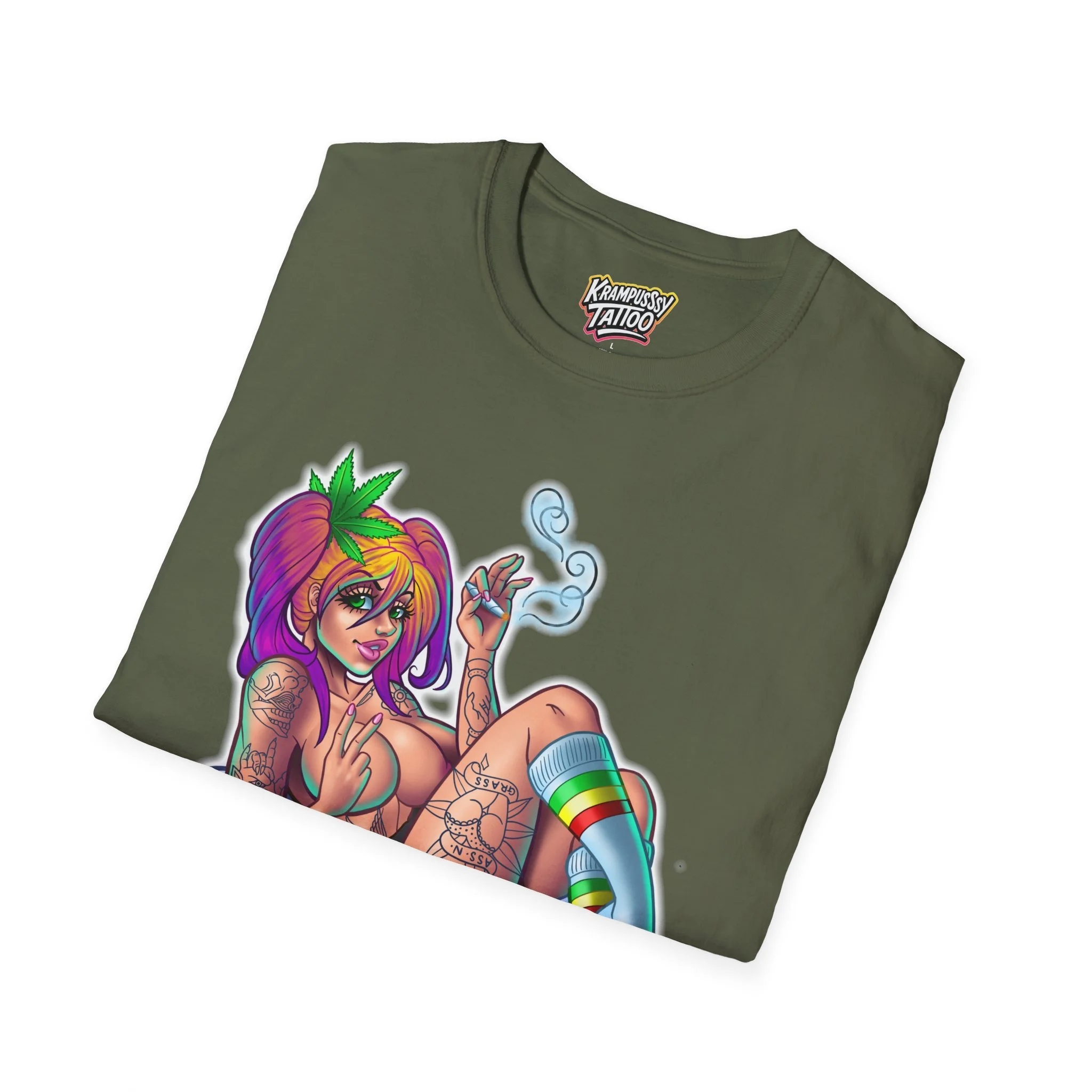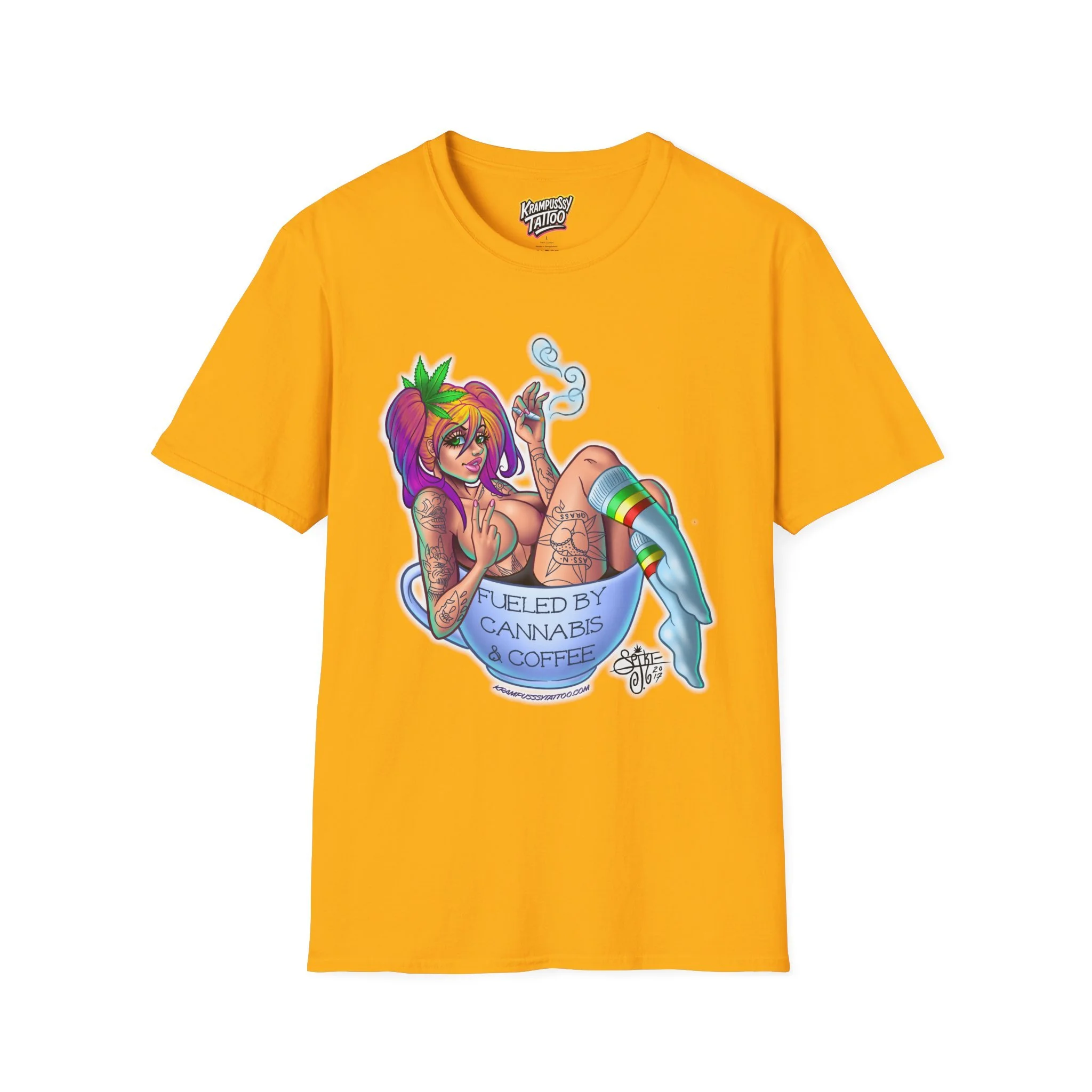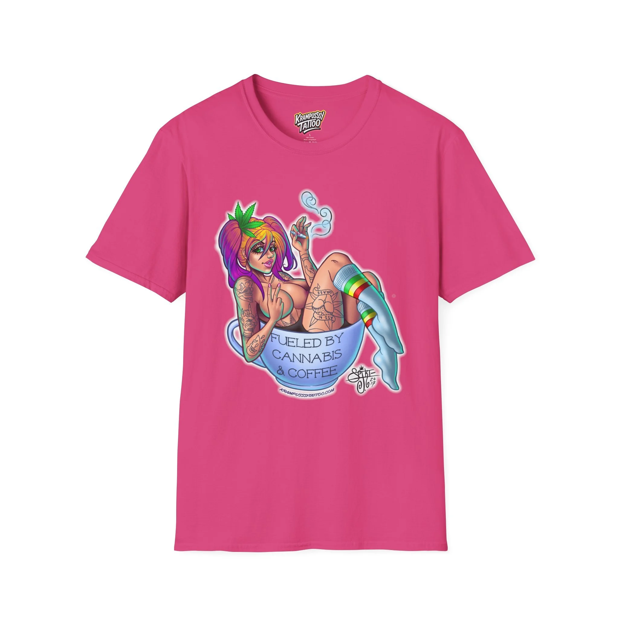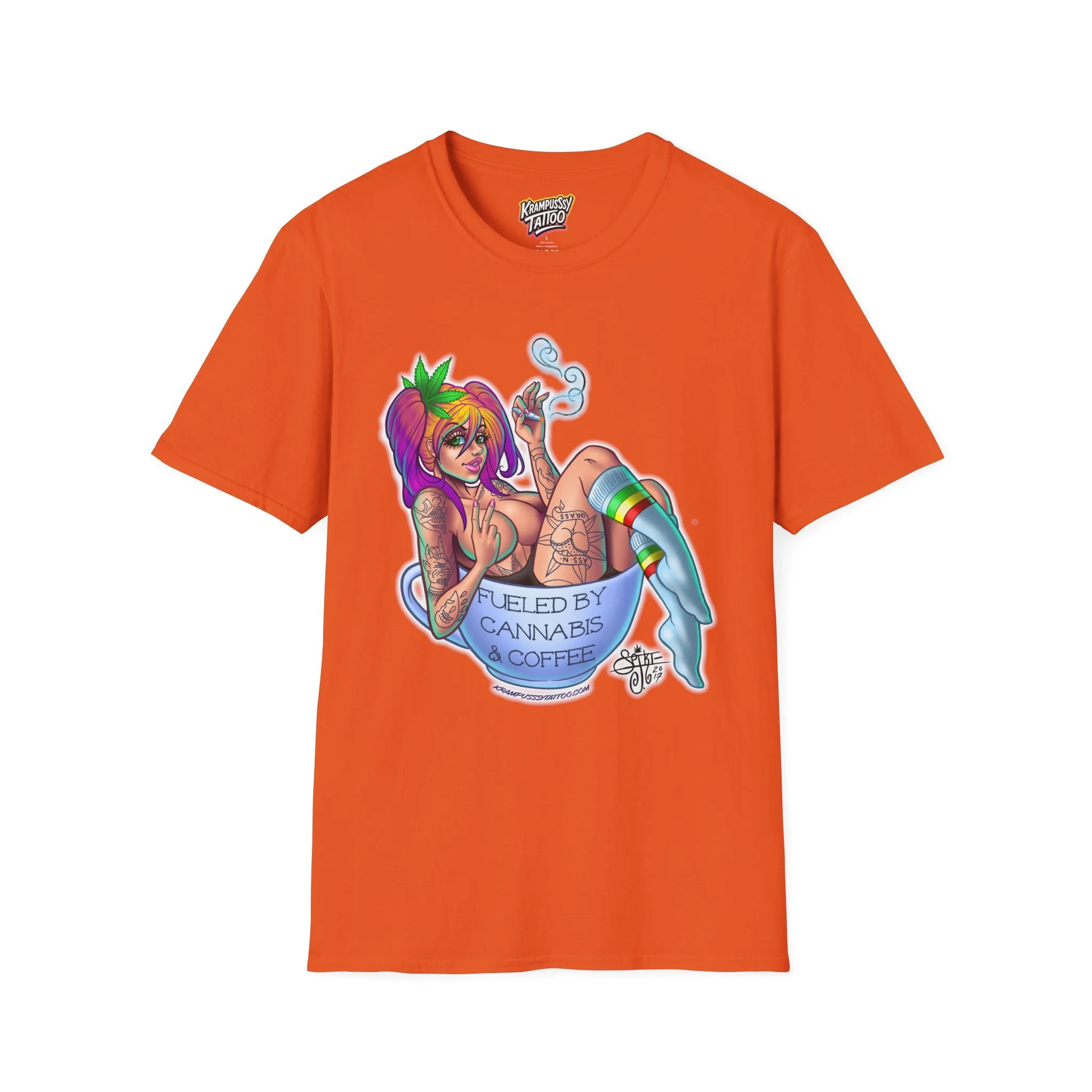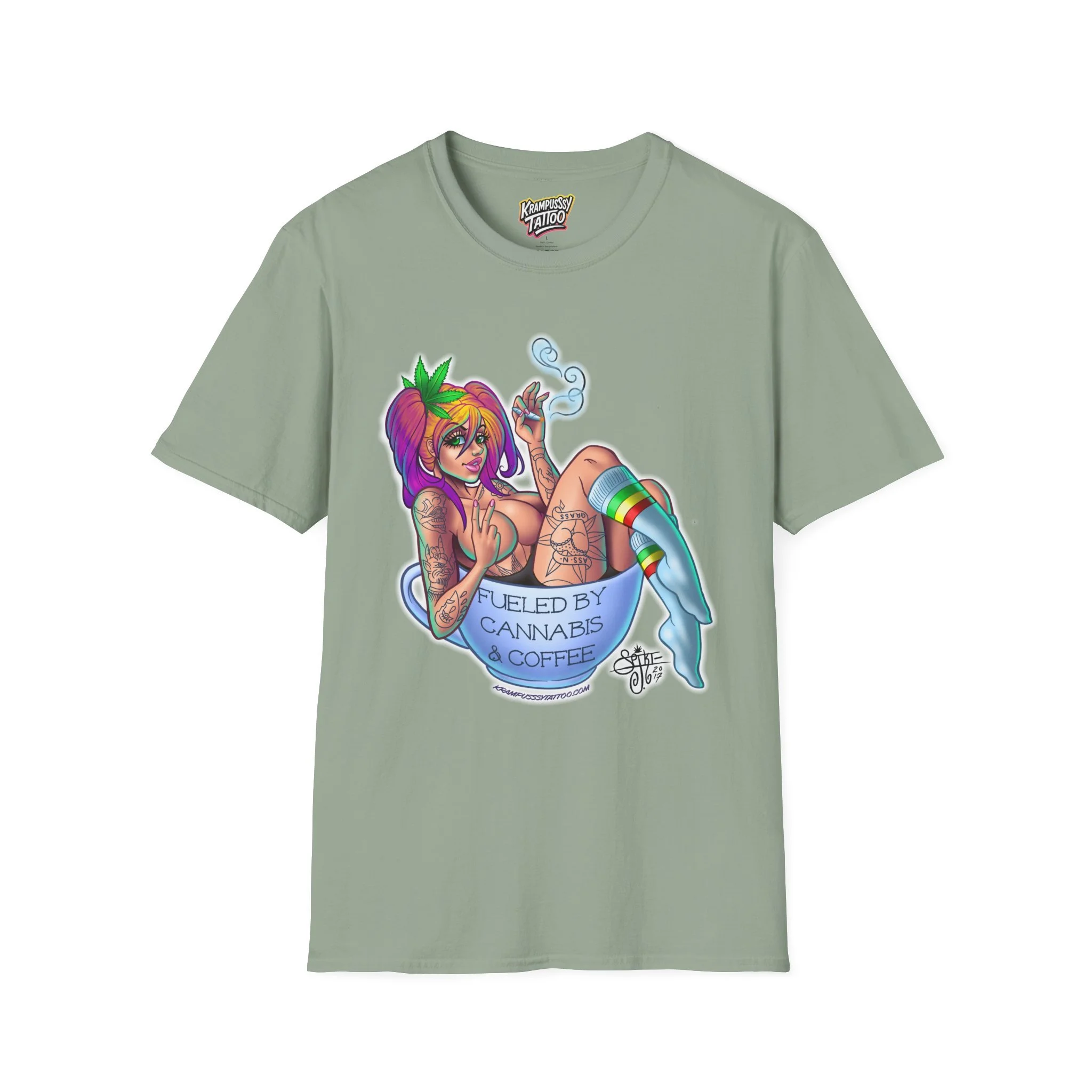 T-Shirt Tattooed Pinup Coffee Cup Weed Smoker Unisex Softstyle