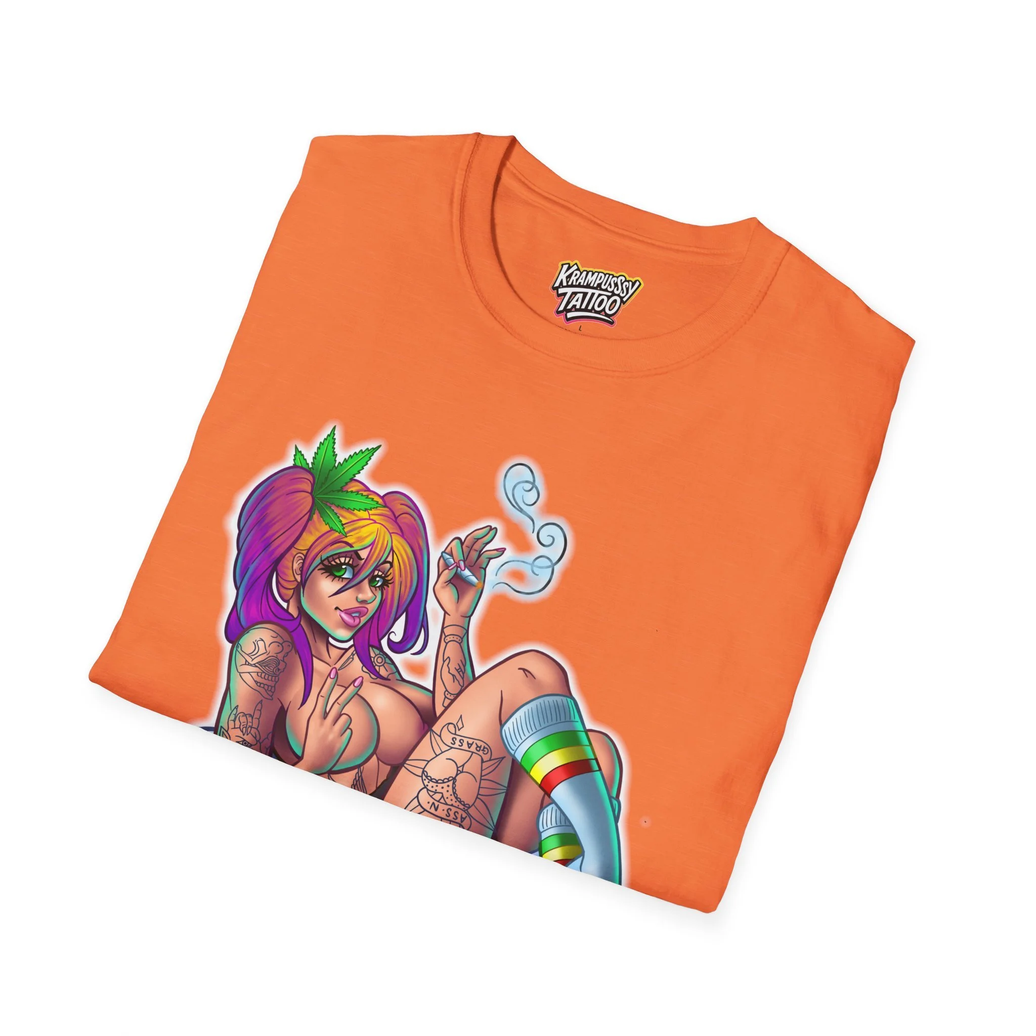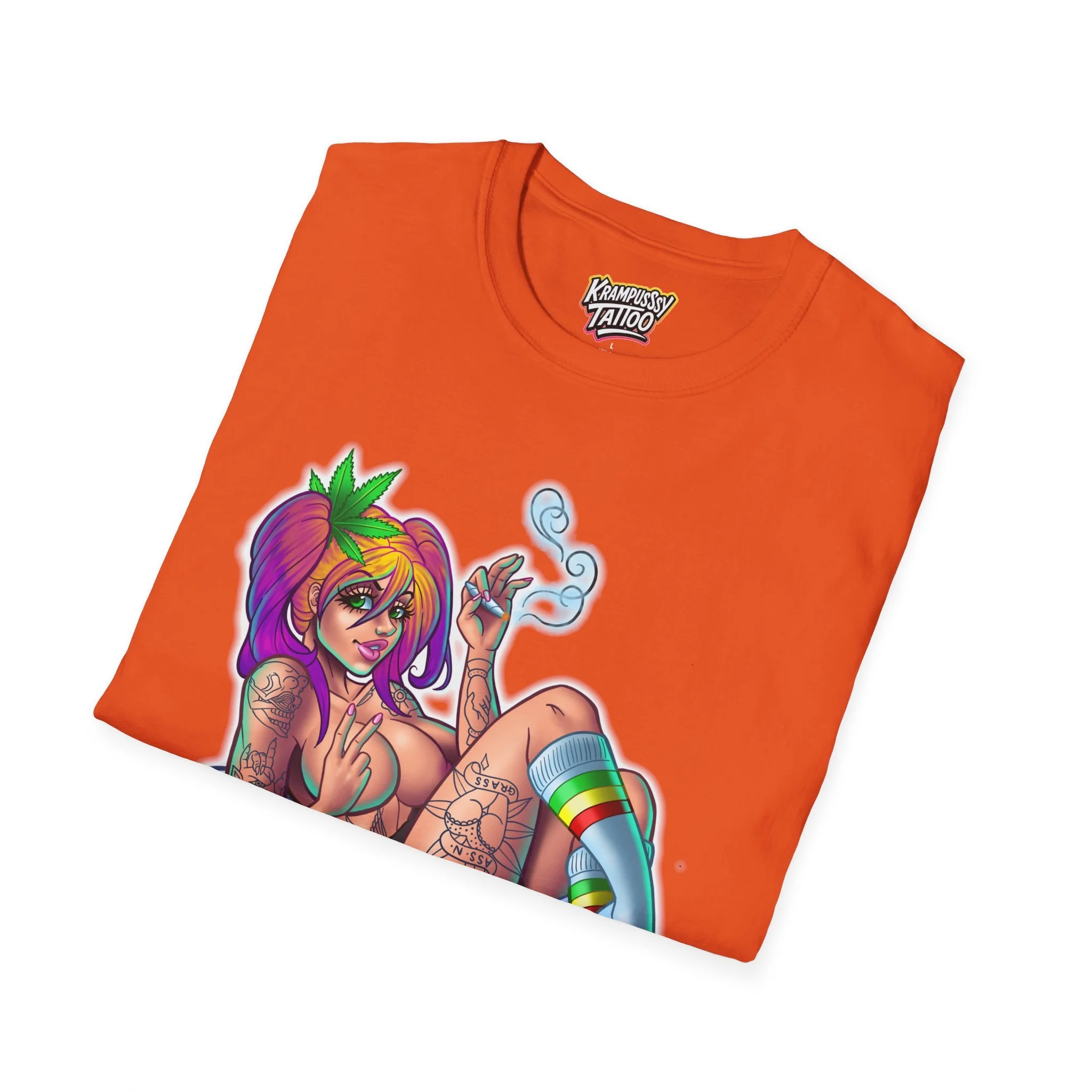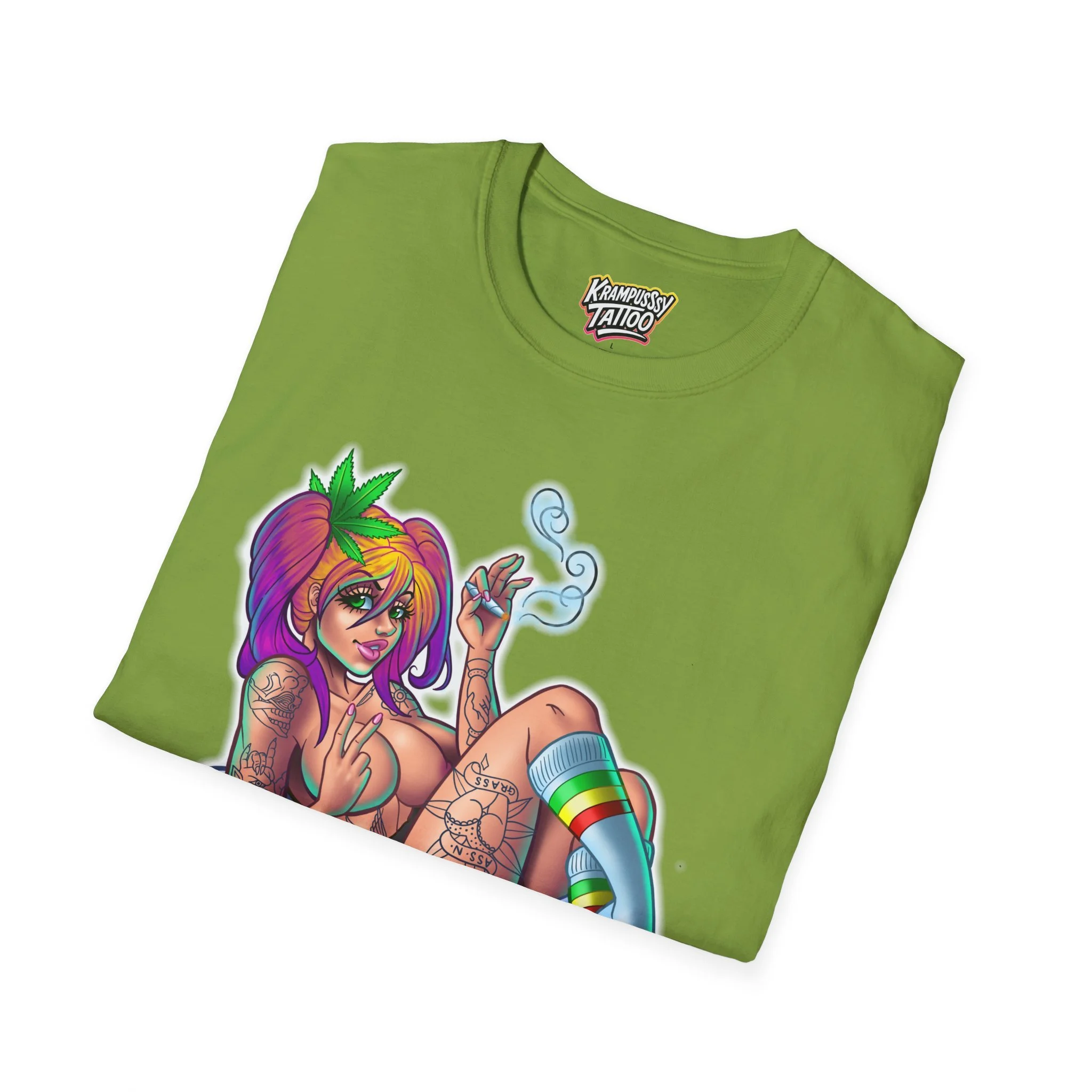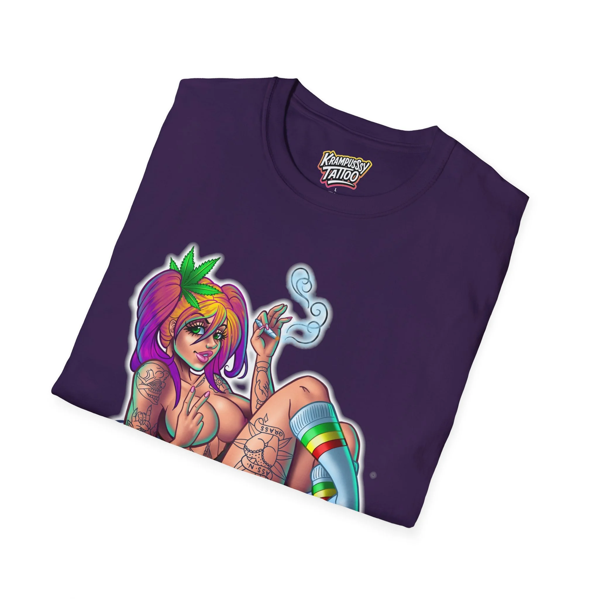 T-Shirt Tattooed Pinup Coffee Cup Weed Smoker Unisex Softstyle